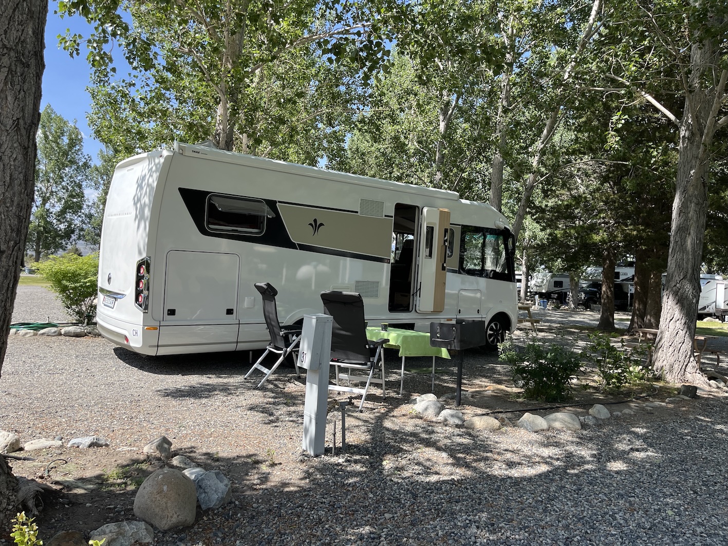 Zur Vorbereitung haben wir deshalb einen Campground vor dem Pass gesucht. Leider gabs erst in Lee Vining etwas passendes. Aber der Mono Vista RV Park hat gepasst. Wir konnten in aller Ruhe die notwendigen Vorbereitungen treffen um so früh wie möglich losfahren zu können.