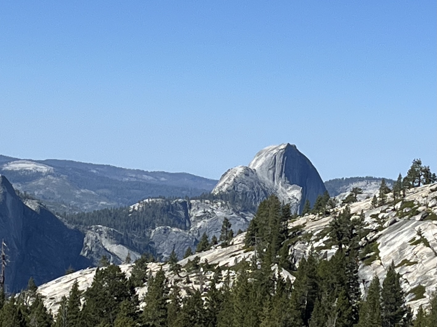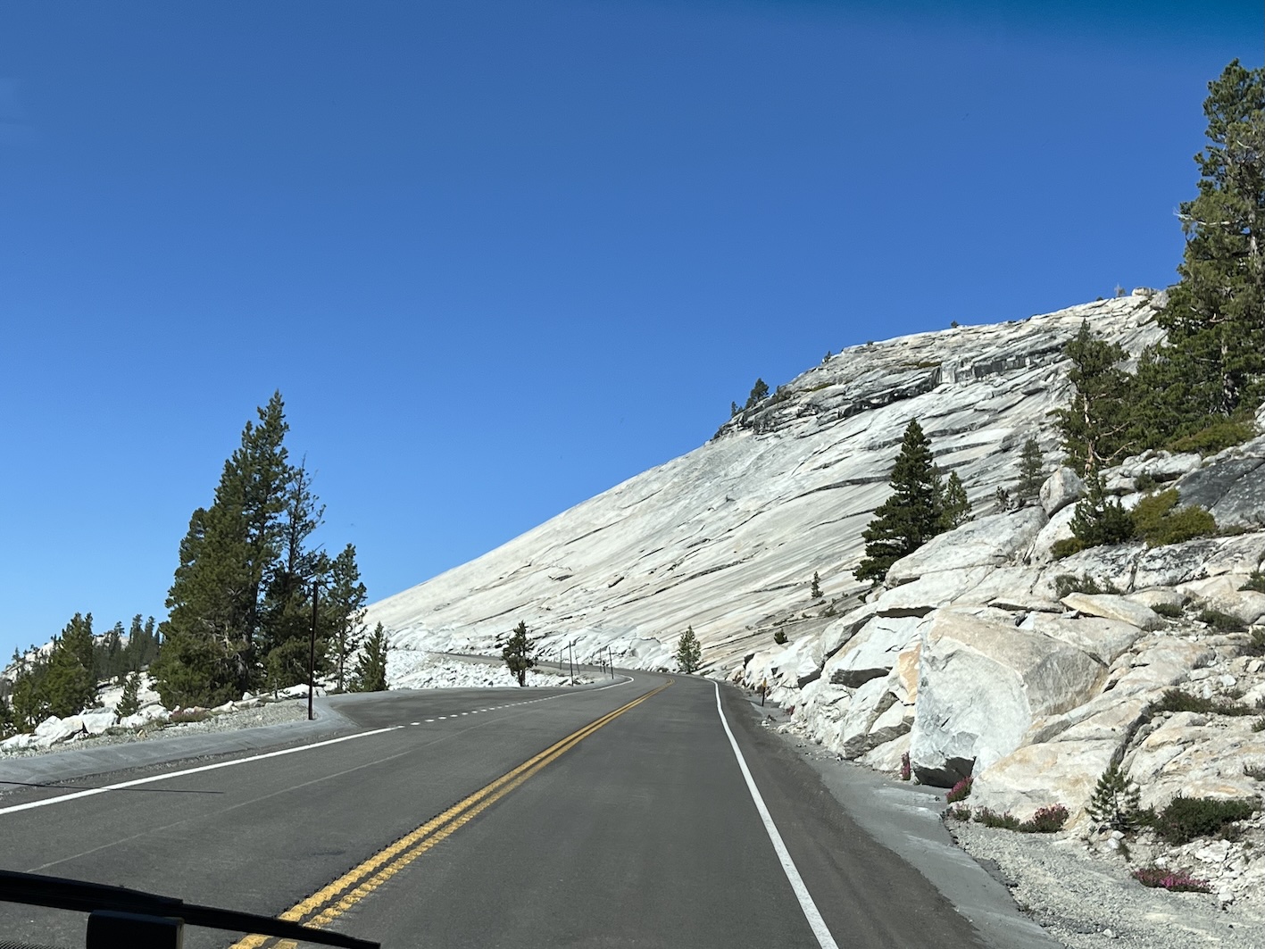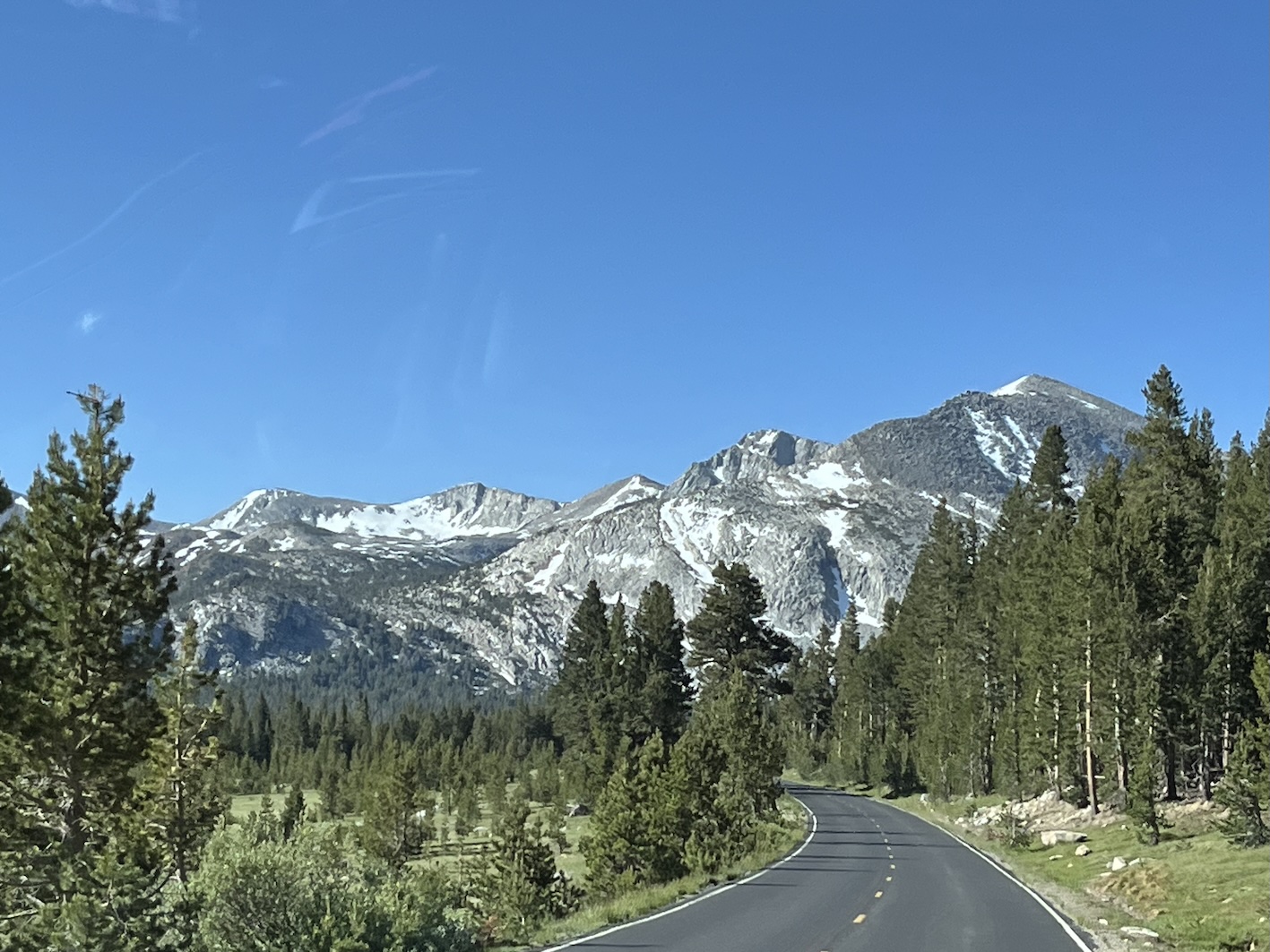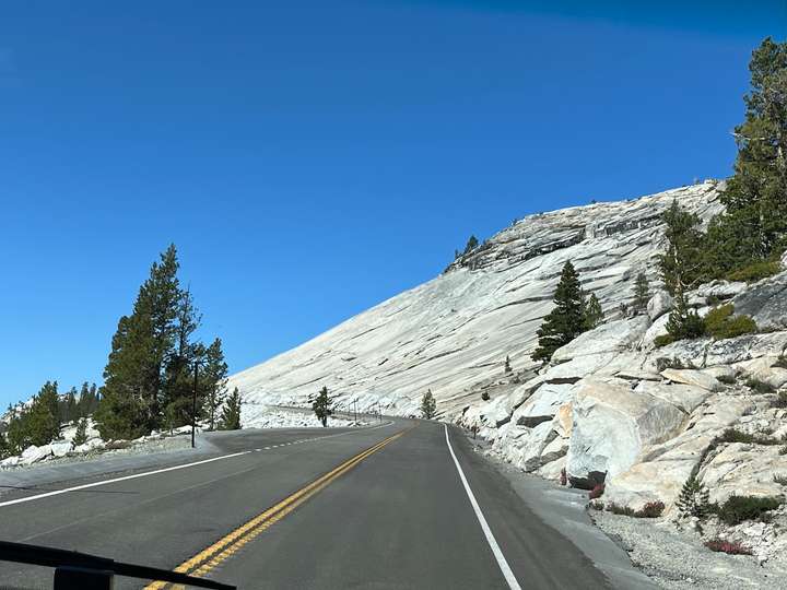 Damit man zu den Peakzeiten (gemäss Definition Yosemite 06:00 - 14:00) in den Park einfahren kann, muss man eine Reservierung machen. Die ging bequem per Internet für 2$ Reservations Gebühr. Offensichtlich will man die Anzahl Fahrzeuge im Park limitieren. Nach meinem Empfinden gelingt das aber nur beschränkt. Vielleicht ist Juni halt noch nicht die Hauptreise Zeit. Jedenfalls war die Fahrt über den Tioga Pass dann einfacher als gedacht. Das Wohnmobil hat die Steigungen, Kurven und Neigungen (bis 14%) locker mitgemacht. (Death Valley war anspruchsvoller)