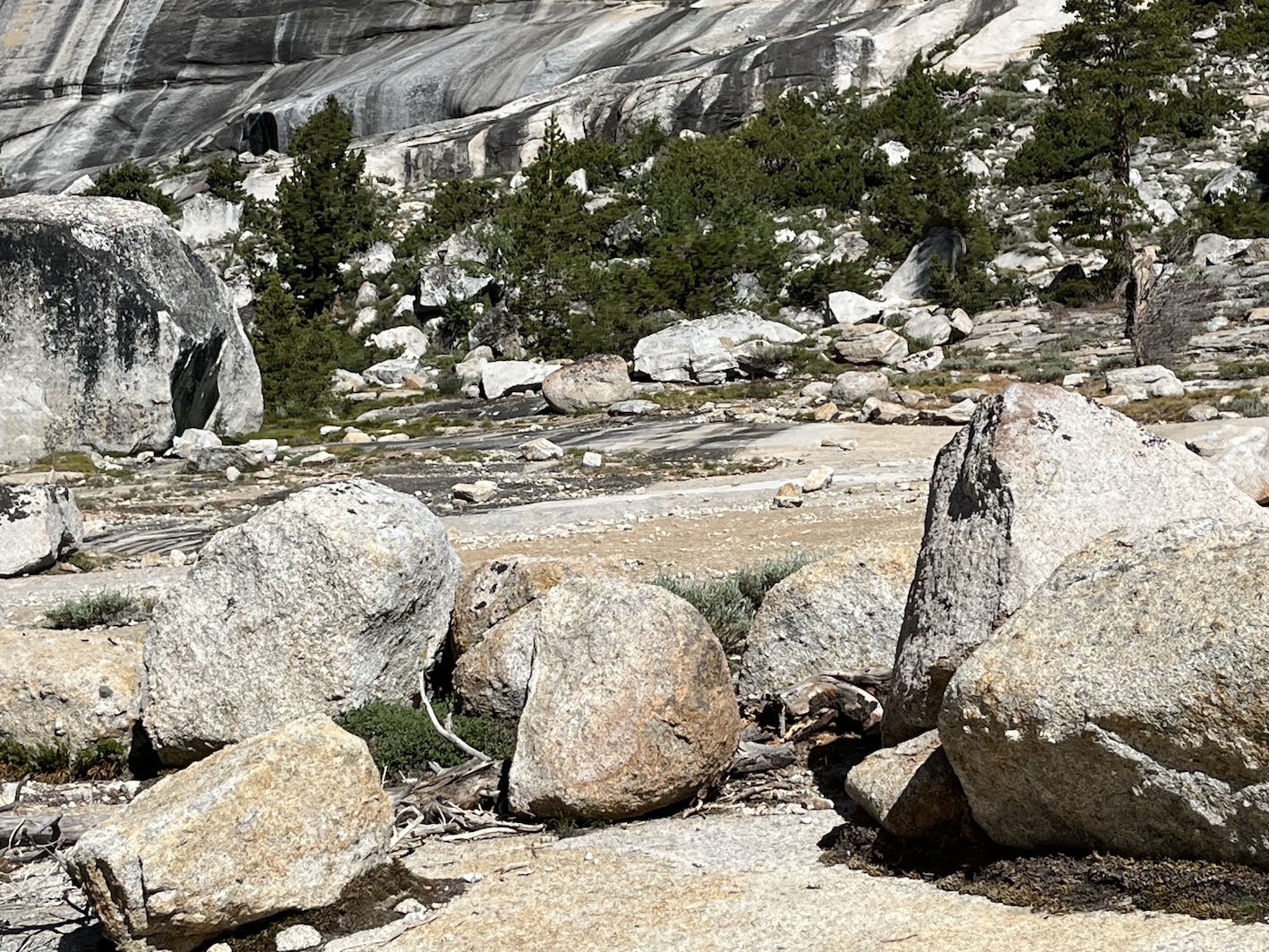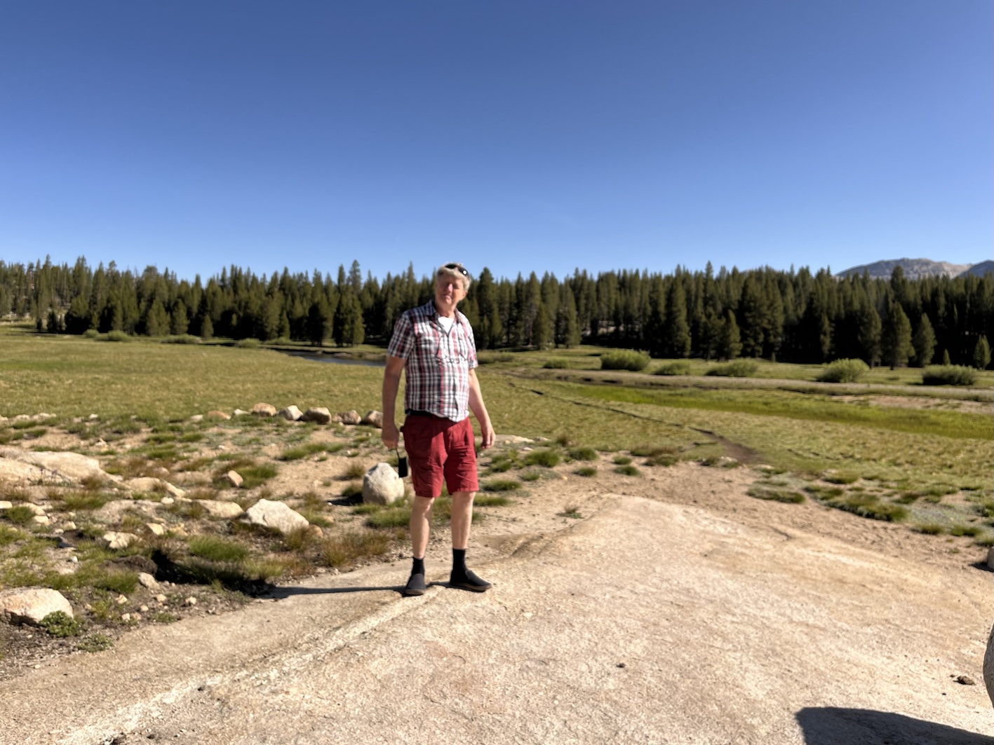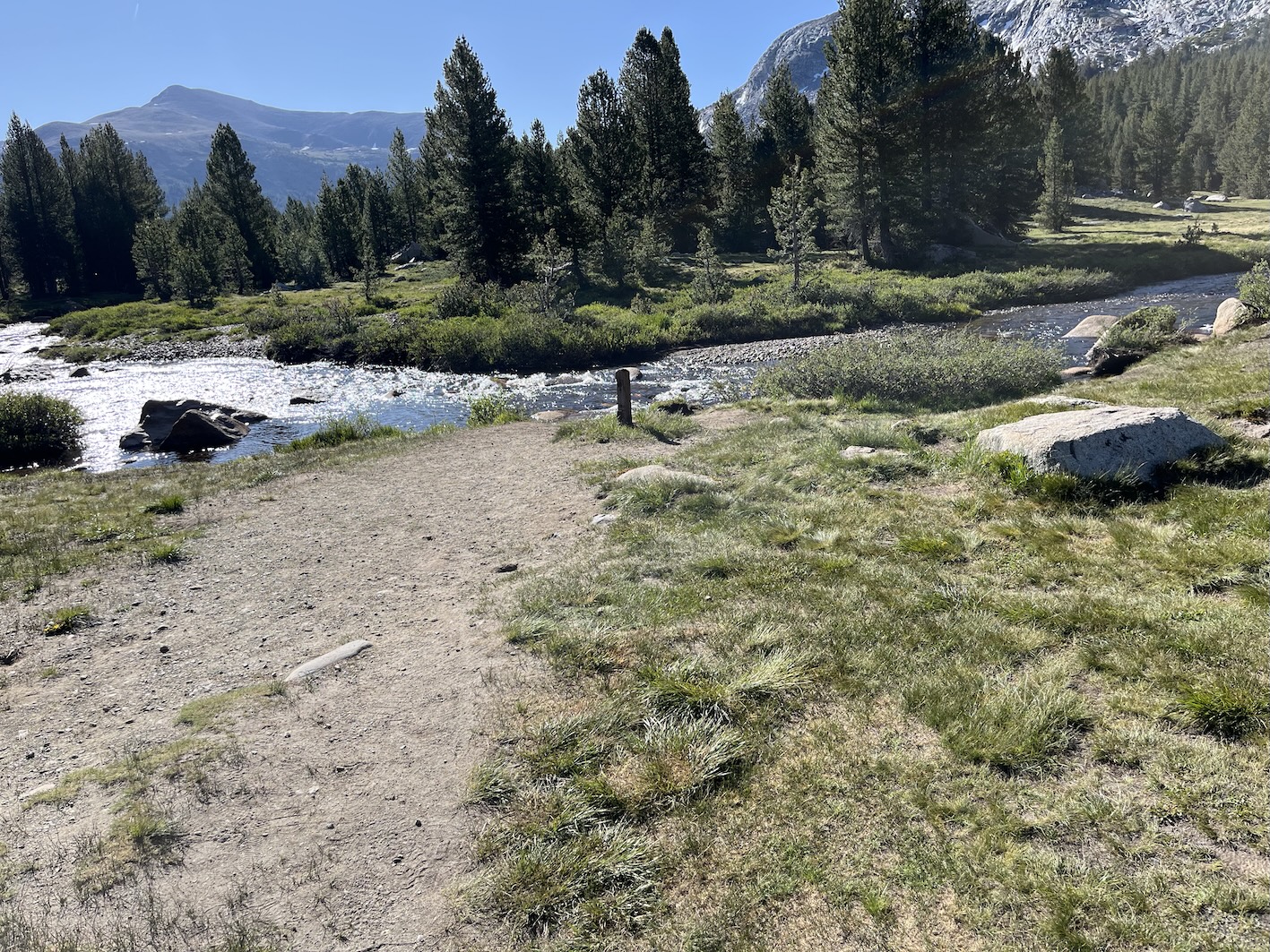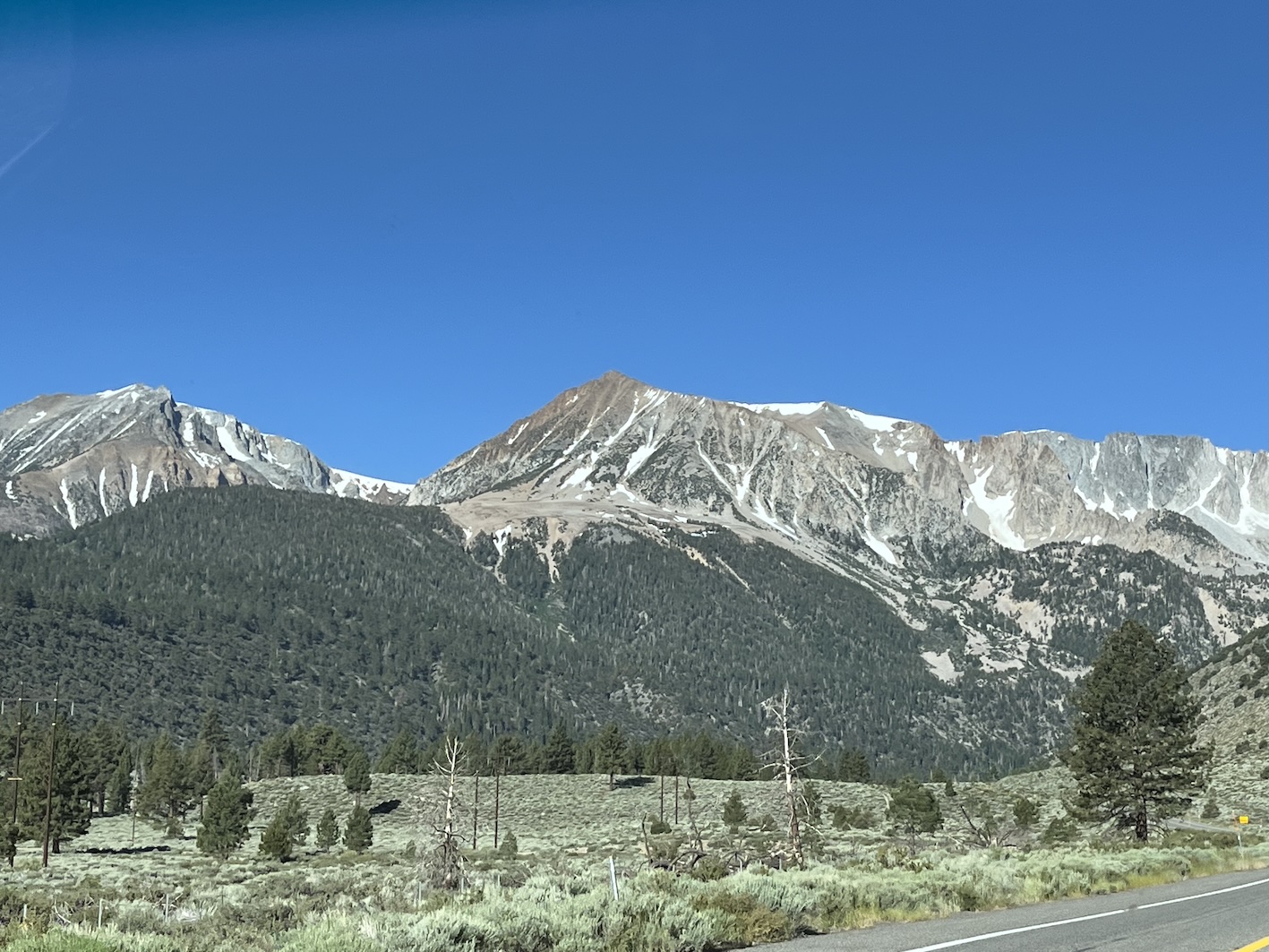Damit man zu den Peakzeiten (gemäss Definition Yosemite 06:00 - 14:00) in den Park einfahren kann, muss man eine Reservierung machen. Die ging bequem per Internet für 2$ Reservations Gebühr. Offensichtlich will man die Anzahl Fahrzeuge im Park limitieren. Nach meinem Empfinden gelingt das aber nur beschränkt. Vielleicht ist Juni halt noch nicht die Hauptreise Zeit. Jedenfalls war die Fahrt über den Tioga Pass dann einfacher als gedacht. Das Wohnmobil hat die Steigungen, Kurven und Neigungen (bis 14%) locker mitgemacht. (Death Valley war anspruchsvoller)