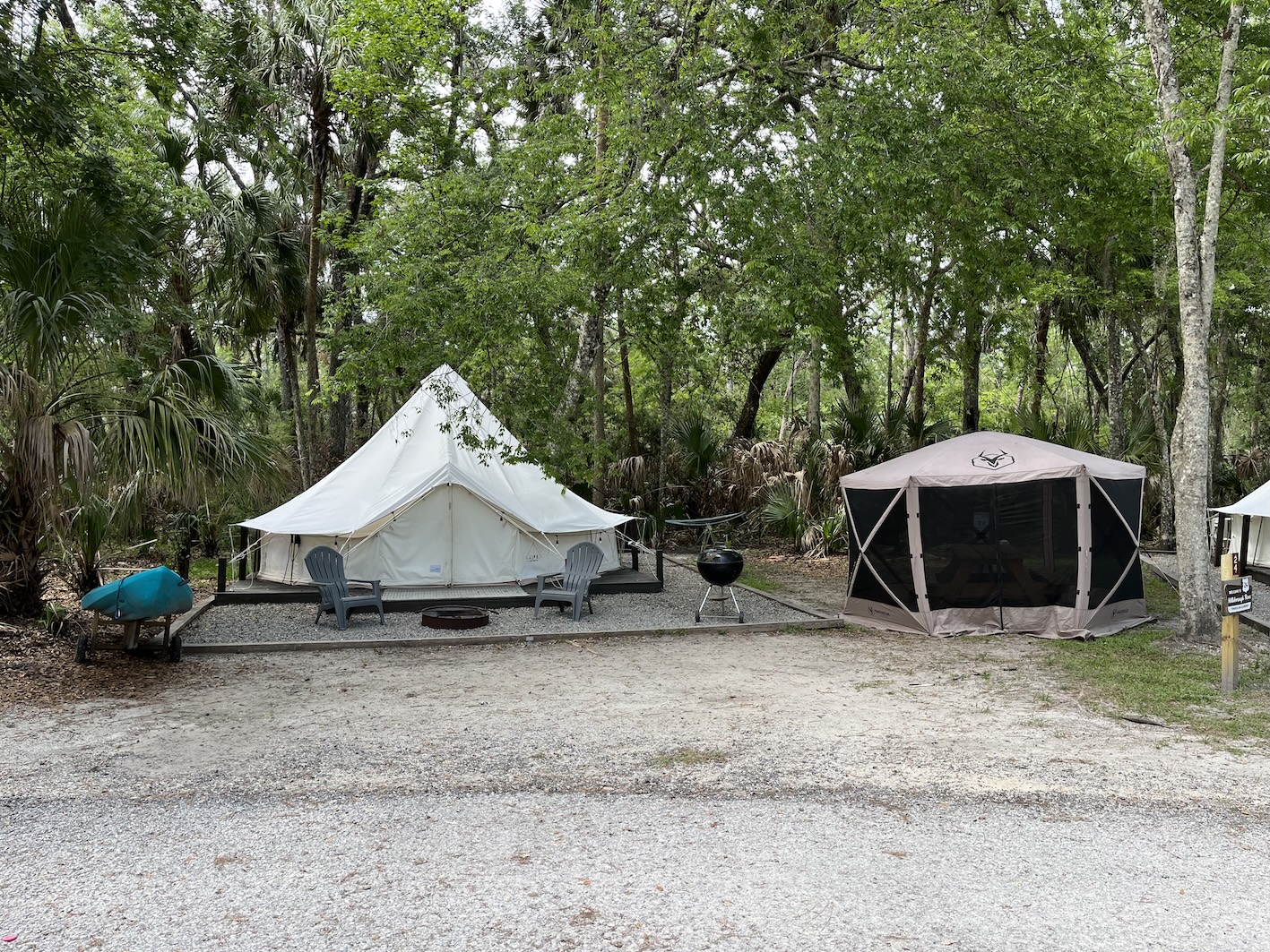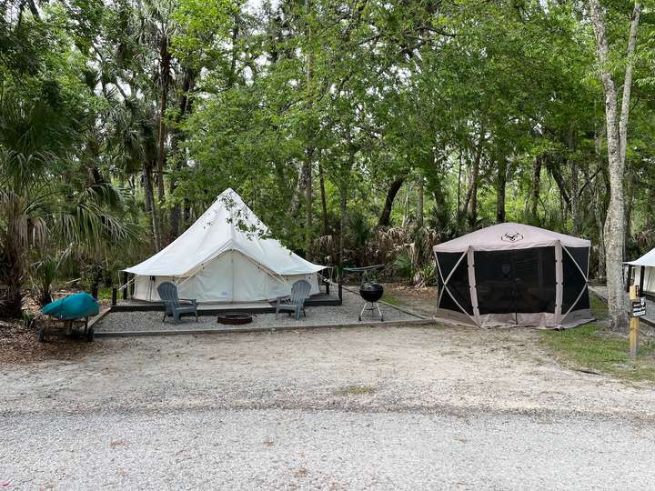 In Hillsborough angekommen, fanden wir wiederum ein extrem grosszügig angelegter Campground vor. Auf unserem Platz hätten wir locker zweimal reingepasst. Hier wird sogar Glamping angeboten. Nach US Vorstellung ist das ein vollklimatisiertes Zelt, mit Kingsize Bett, Grill, Firering, einer Sitzbank/Tisch Kombination in einem Mückenschutz-zelt, sowie einem Hammock. (Hängematte)