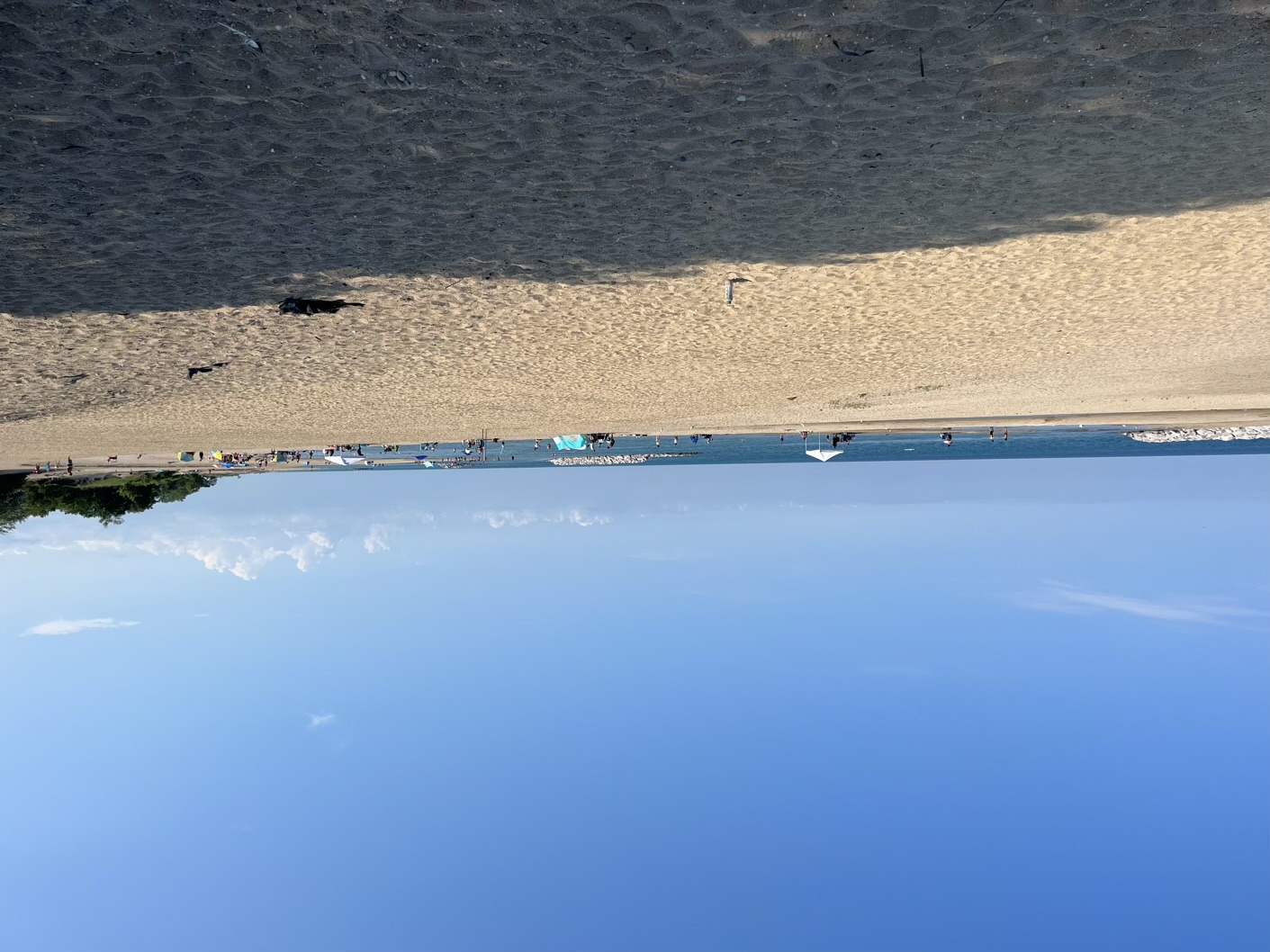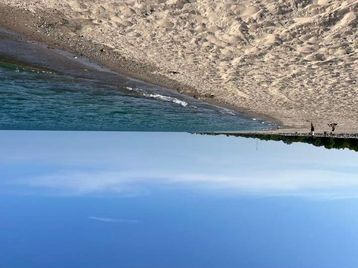 Update: Heute ist es stürmisch und überall liegt Rauch in der Luft. (Waldbrände in Kanada?) Die Luftqualität ist sehr schlecht. Aber die Wellen im Lake Michigan sind mit etwa 6-9 Fuss oder 1,5 bis 2,7 Meter wirklich gross. Baden nicht möglich!