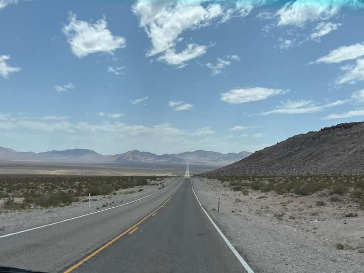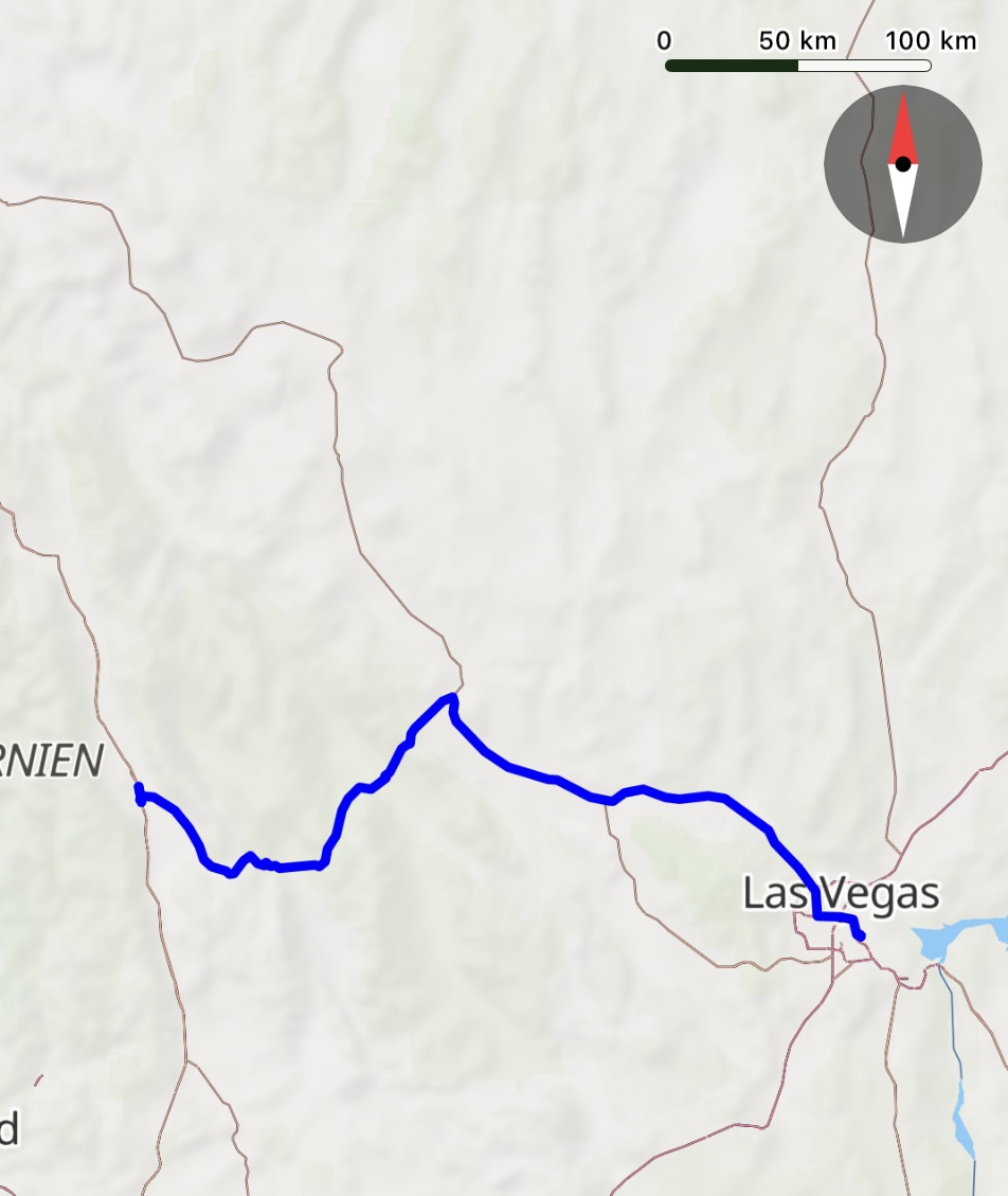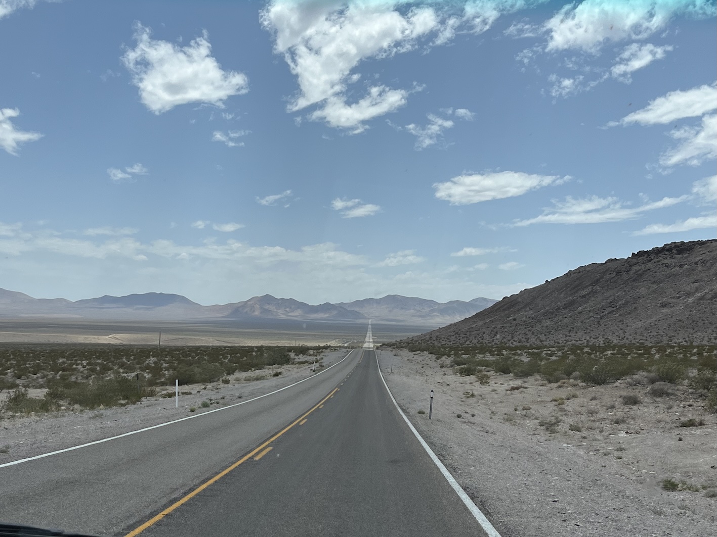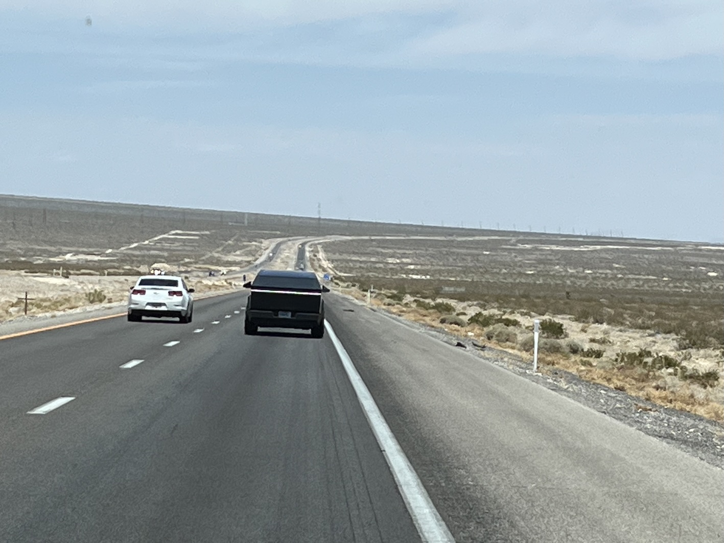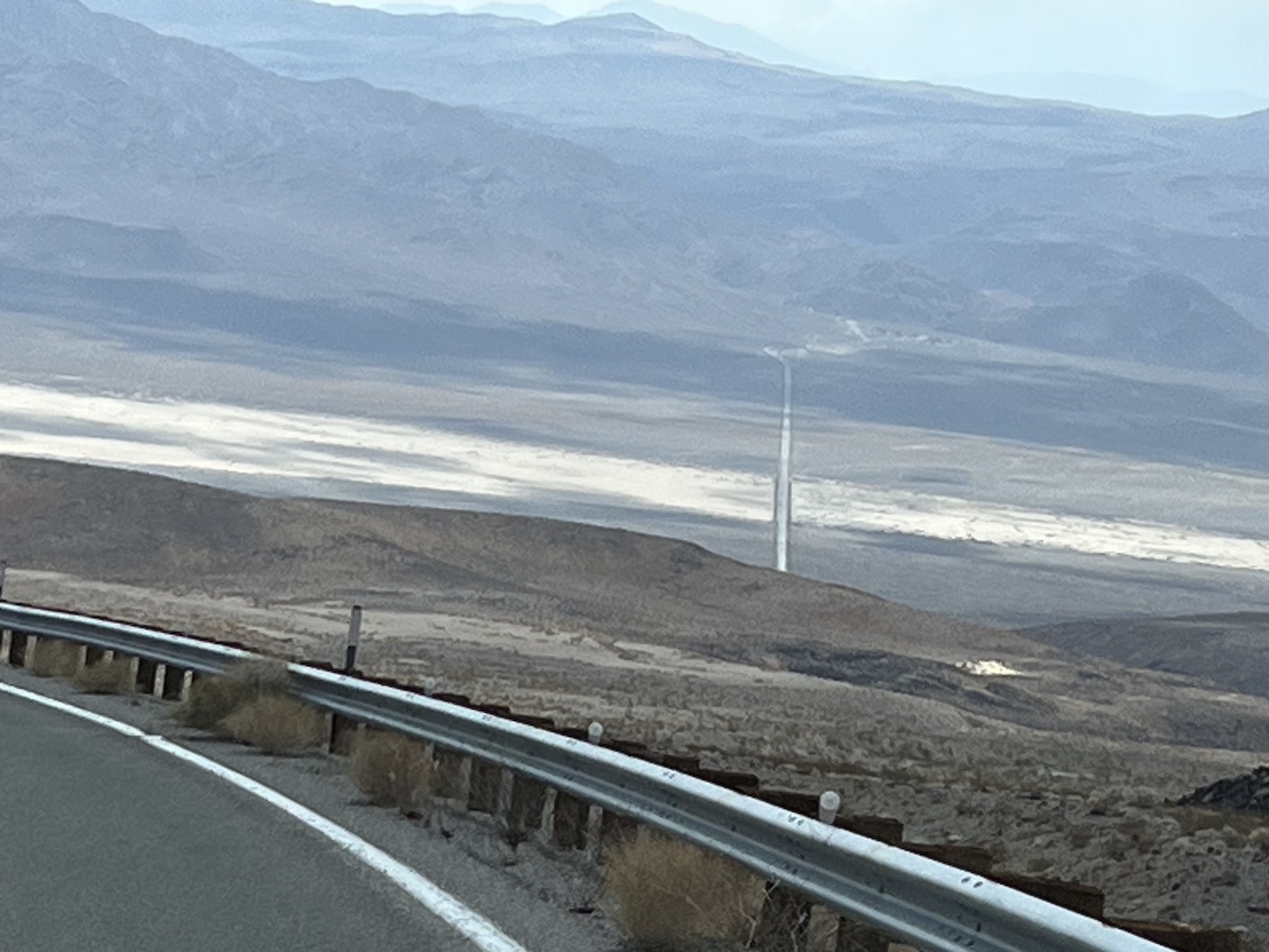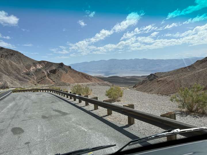 Zugegebenermassen komplett unterschätzt. Es ist erstens eine völlig unwirkliche Gegend, zweitens steigen die Temperaturen tatsächlich auf gemessene 50° an. Und drittens ist die zwar gut ausgebaute Strasse mit extrem langen Steigungen und Gefällen (jeweils locker mehr als 25km lang) eine Herausforderung für jedes Fahrzeug.
