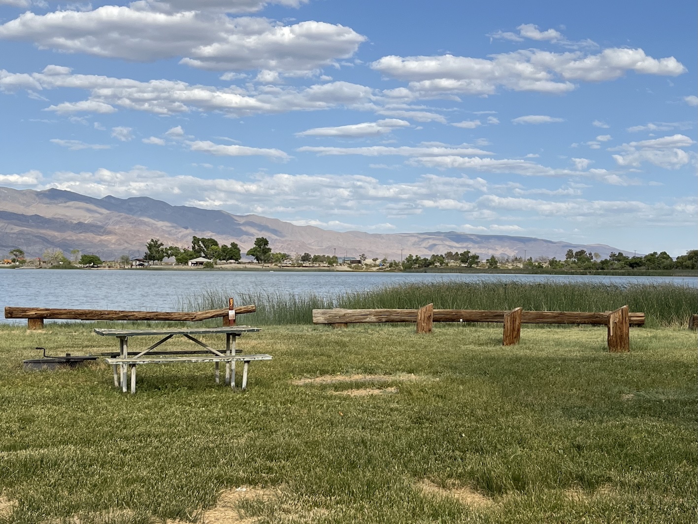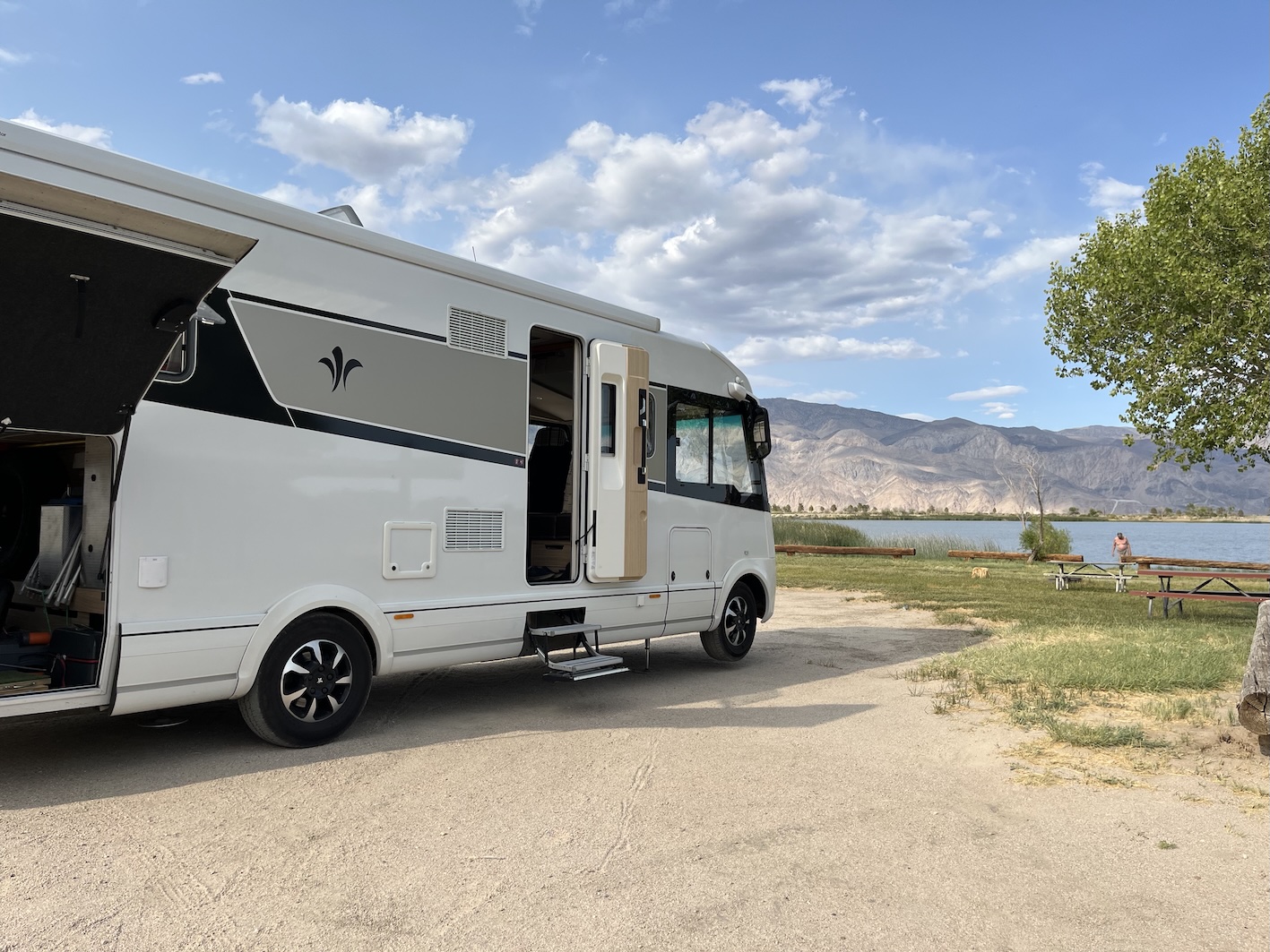 Klar wurde mir das, als das erste Schild auftauchte mit dem Hinweis die Klimaanlage abzuschalten, um den Motor nicht zu überhitzen! Carina hat stellenweise Blut geschwitzt und mir jene Vorwürfe vonwegen Schnapsidee gemacht. Schliesslich ist aber alles gutgegangen und wir haben am Diaz Lake Campground einen super Platz gefunden. Das liegt in der Nähe von Lone Pine.