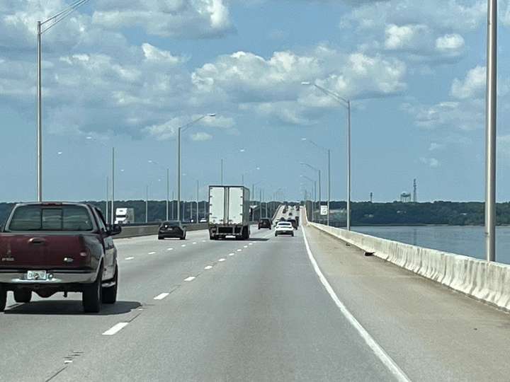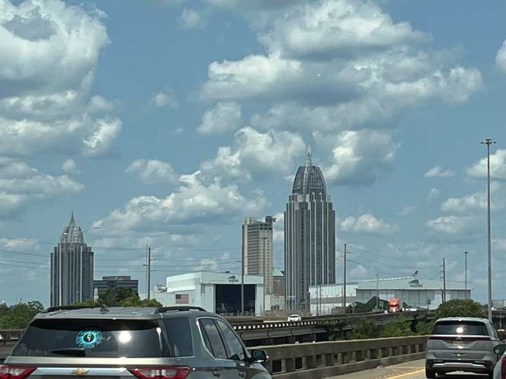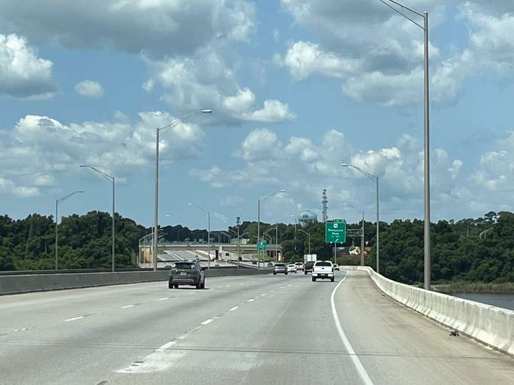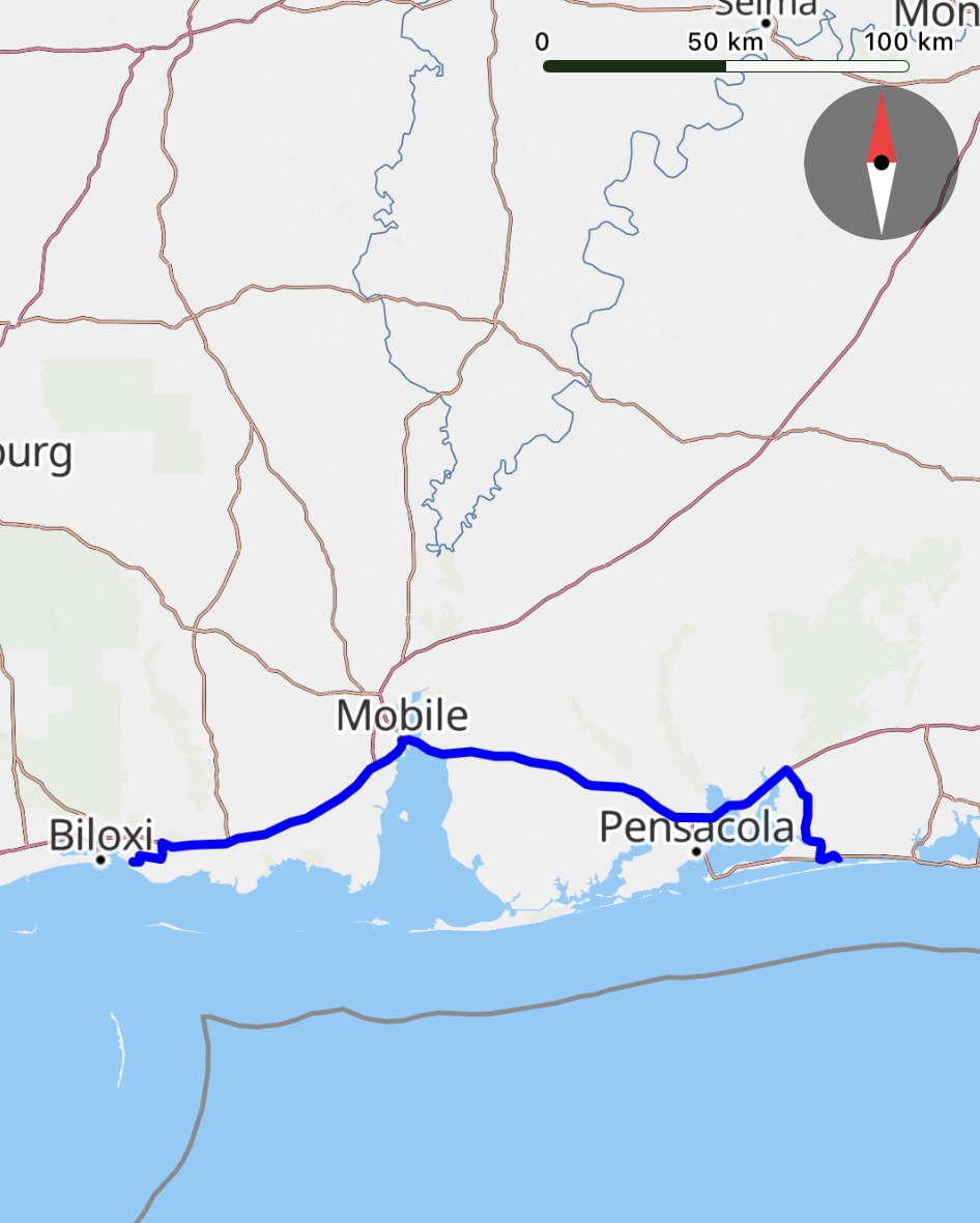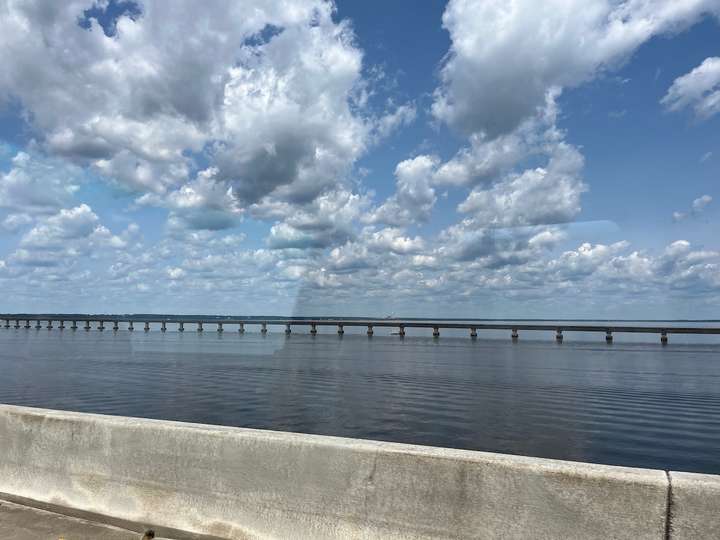 Unterwegs mal wieder viele und breite, mehrheitlich sehr gute Strassen, siehe Bilder. Ein in die Jahre gekommener Tunnel unter der Meeresbucht in Mobile führte zu einem Stau, weil sich die meisten etwas Mühe damit hatten und deshalb nur im Schritttempo gefahren sind!? (das war erst der zweite Tunnel in den 7500km😬)