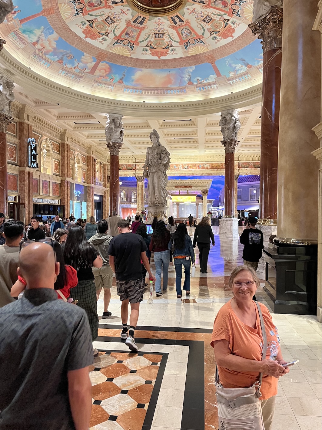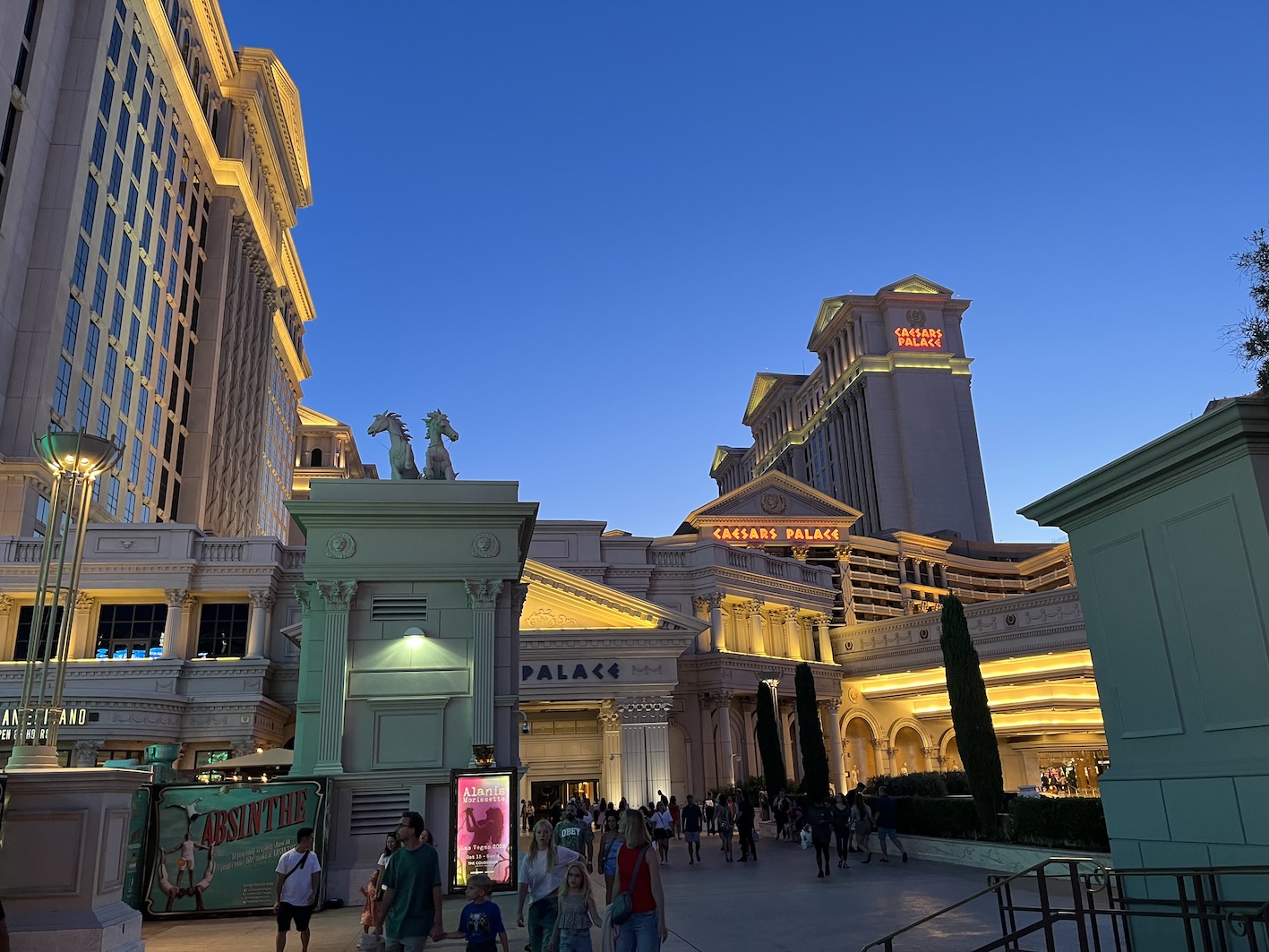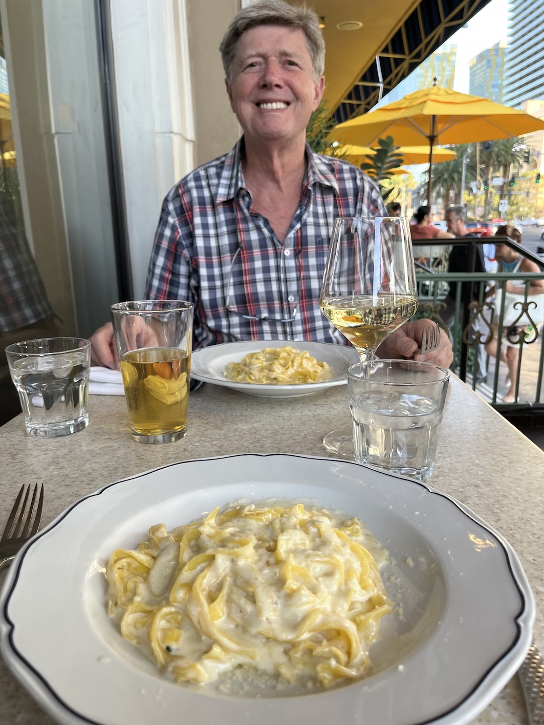 Später nahmen wir ein Uber (diesmal ein elektrischer Polestar 2) um uns nochmal ins Getümmel am Strip zu begeben. Erstens hatten wir Hunger, den wir im Alexxas einem italienischen Restaurant stillen konnten. Es gab sehr feine hausgemachte Fetuccini. Und zweitens gabs noch das Belaggio und das Caesars Palace zu bewundern. Auch das Paris lag auf dem Weg. Alles riesige Anlagen, wofür uns effektiv die Superlativen ausgegangen sind. Einfach abartig!!!