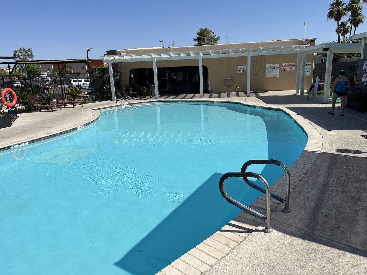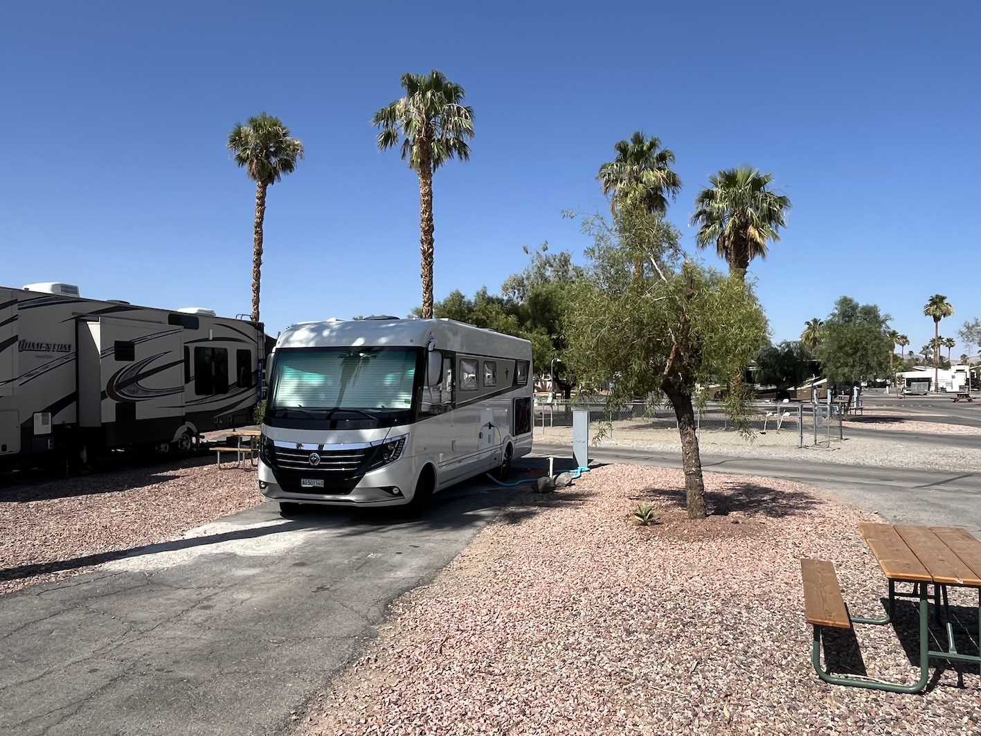 Etwas gemütlicher war es heute, so hatten wir Schwätzchen mit Amis im Pool. Ein Schweisser der von seinem Arbeitgeber in ganz USA herumgeschickt wird um Schweissarbeiten zu erledigen.(?!) Deshalb ist er mit seiner Frau im 41 Fuss Trailer unterwegs und hat eigentlich gar kein festes Zuhause.
