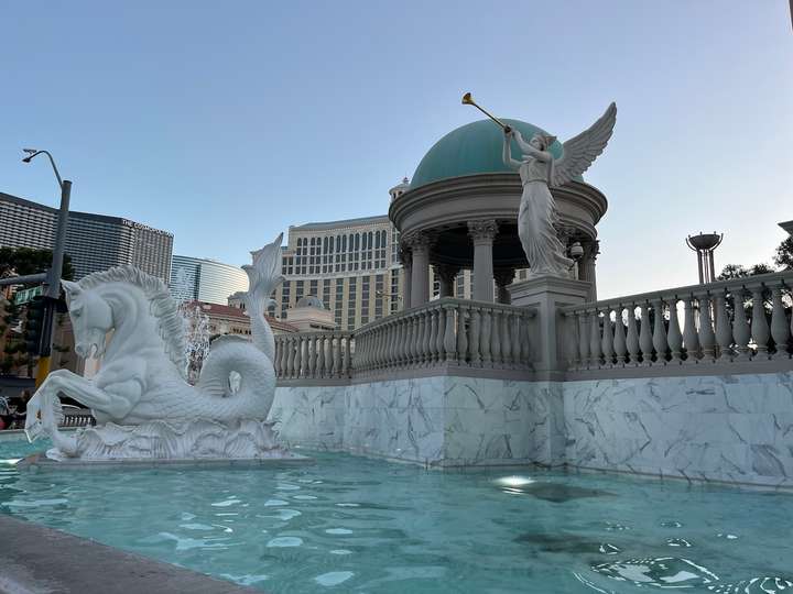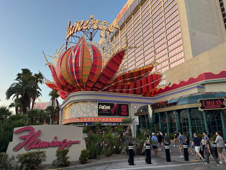 Am späteren Nachmittag liessen wir uns vom Uber zum etwa 10km entfernten Las Vegas Boulevard - dem Strip fahren. Ausgestiegen sind wir beim Flamingo Casino, das es seit 1949 gibt aber viel Veränderung erfahren hat. Unterwegs haben wir in der Wüste, wer hätte das gedacht, riesige PV-Anlagen gesehen, die wohl zumindest einen Teil der Energie für Las Vegas liefern. Bilder von Unterwegs und im Flamingo: