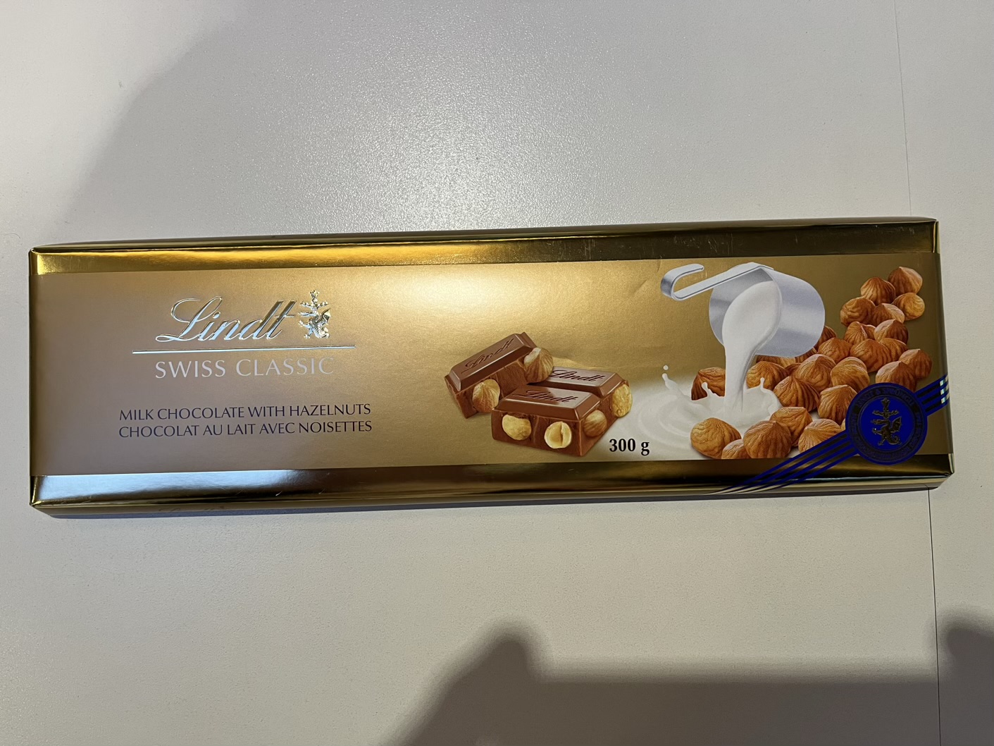 Die Schoggi wird in 300g Tafeln verkauft, importiert aus der Schweiz!