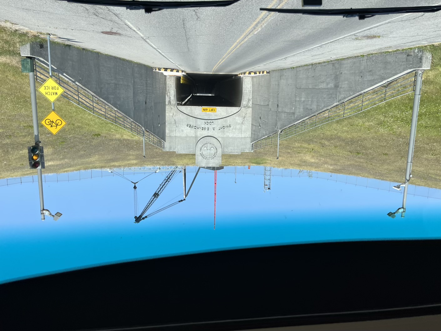 Der Lorenz-Strom wird hier angestaut zum Lake St. Lawrence. Der Moses-Sanders Power Dam ist ein Gemeinschaftsprojekt vom Moses (USA) und Sanders (Kanada). Der Damm hat zwei wichtige Aufgaben, die Kraftwerke liefern seit 1960 fast 2'000MW elektrischen Strom und es wird der Fluss reguliert, damit die grossen Frachtschiffe vom Atlantik Flussaufwärts schippern können. Mit 2'000 Megawatt können über eine Million Haushalte mit hier erneuerbarem Strom versorgt werden.