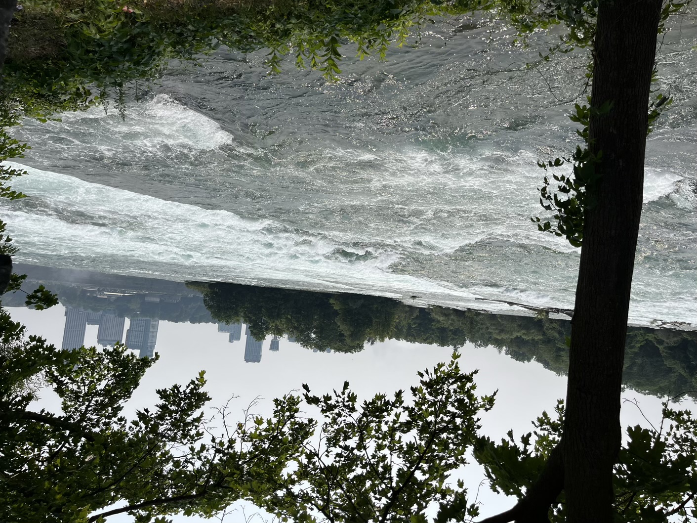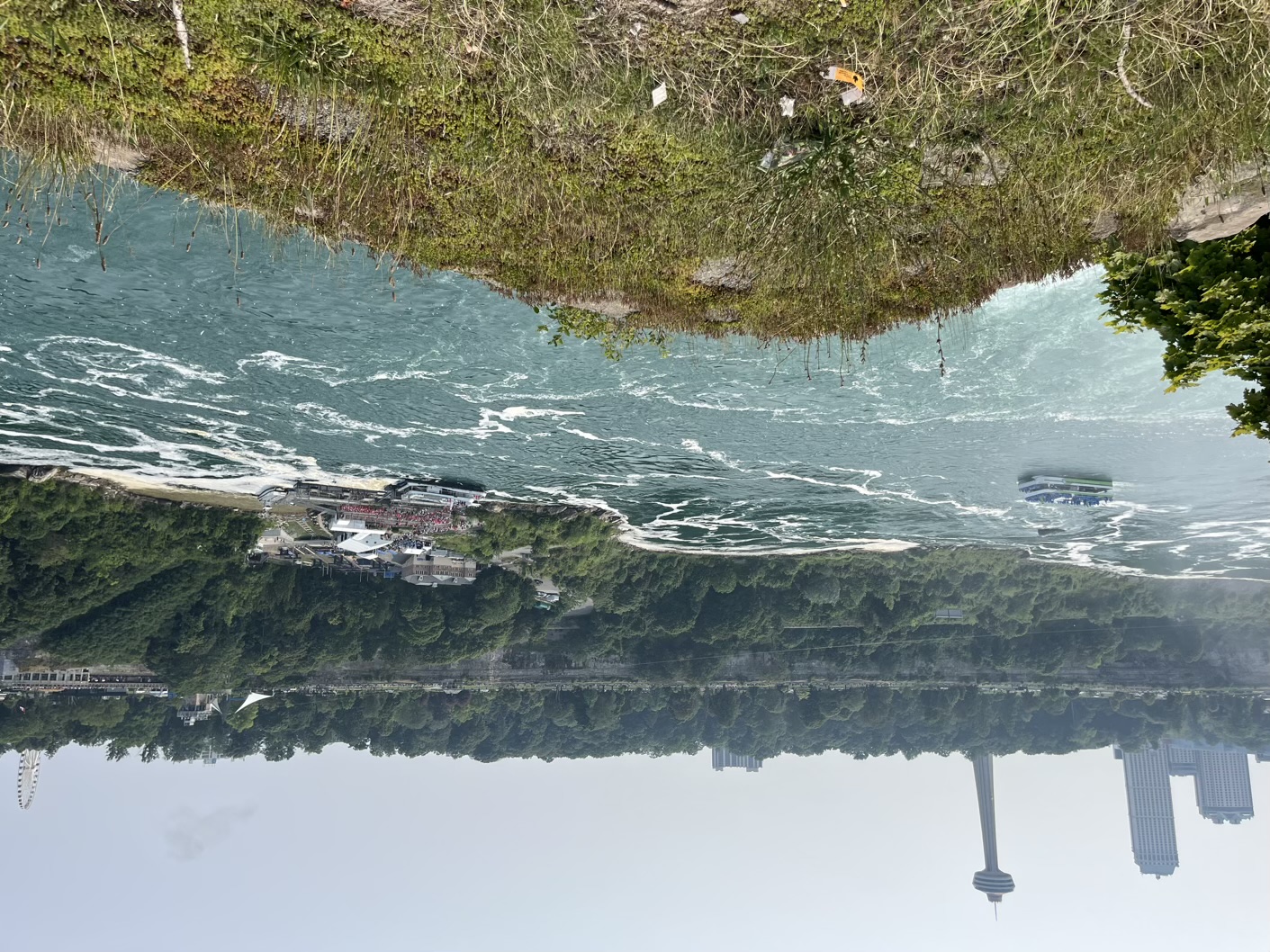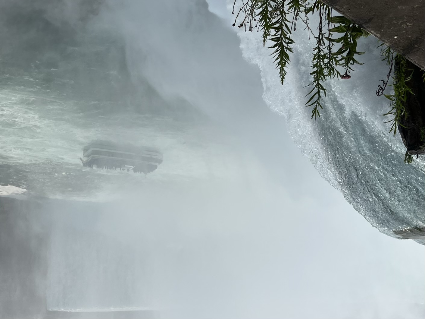 Ungeheure Wassermassen die hier runterstürzen, im Hintergrund die kanadische Seite der Fälle. (Das andere Ufer ist bereits Kanada)