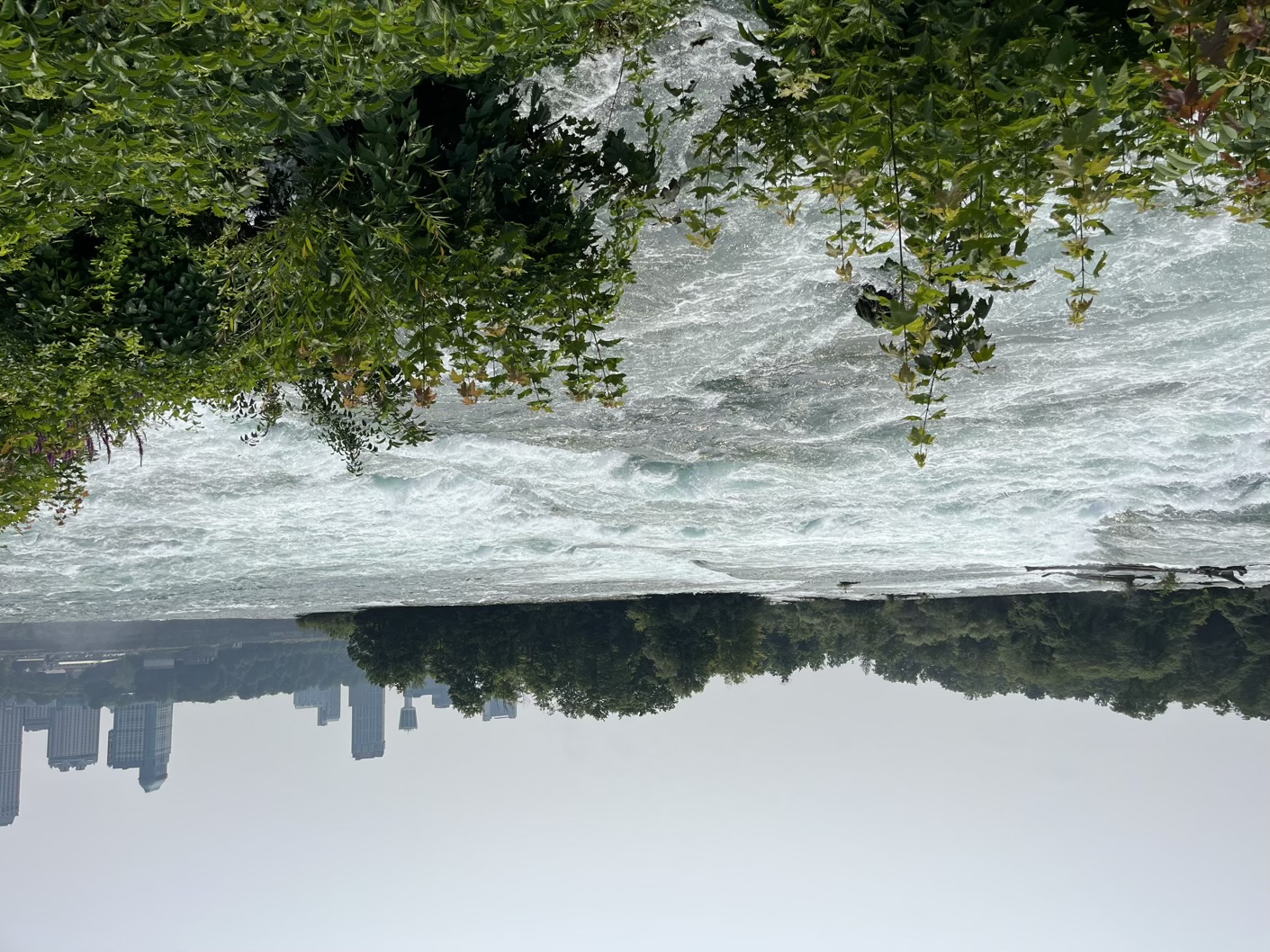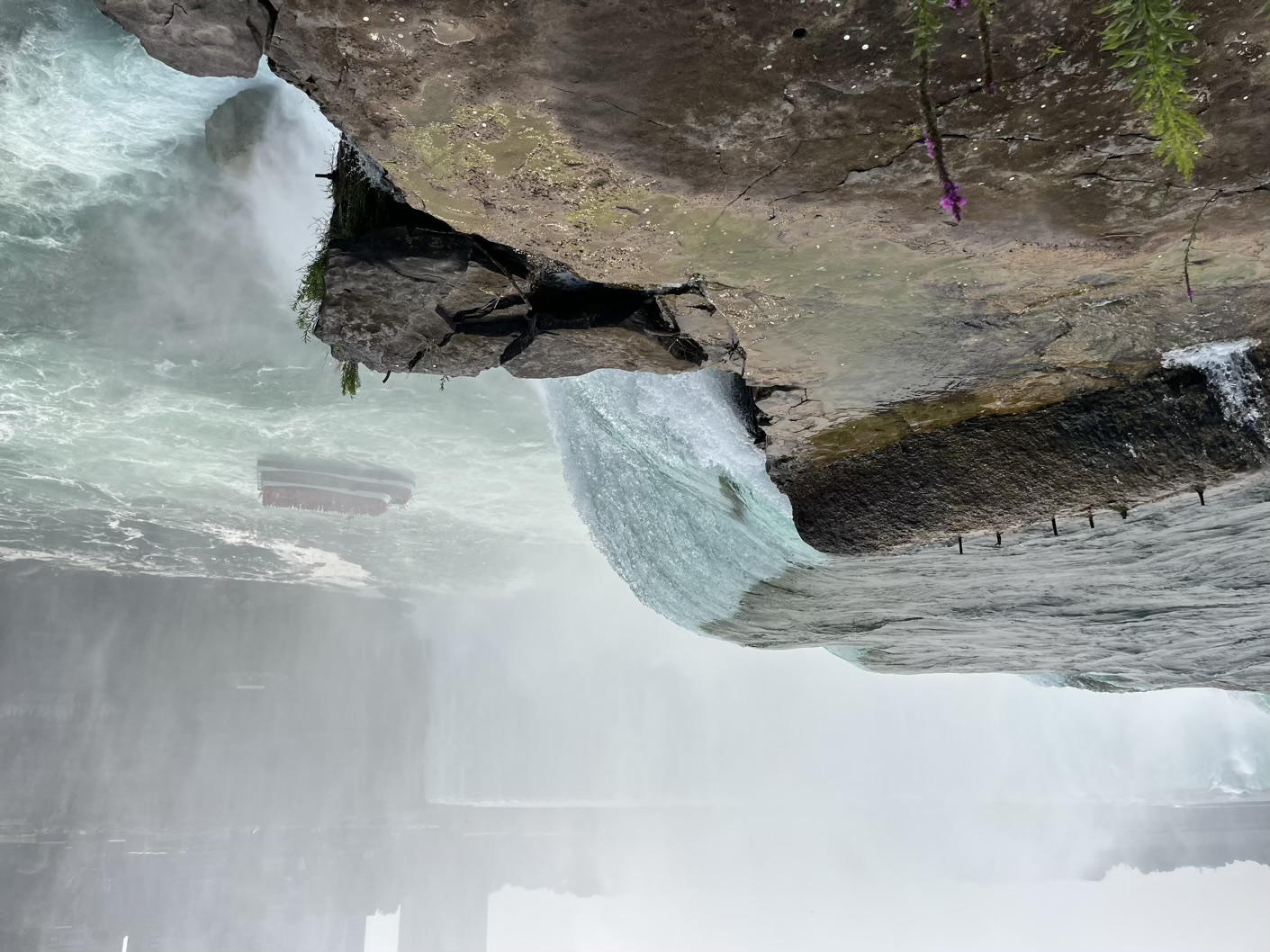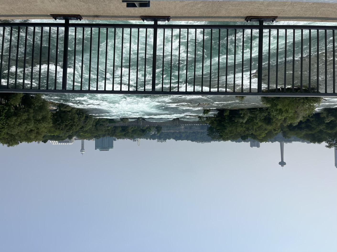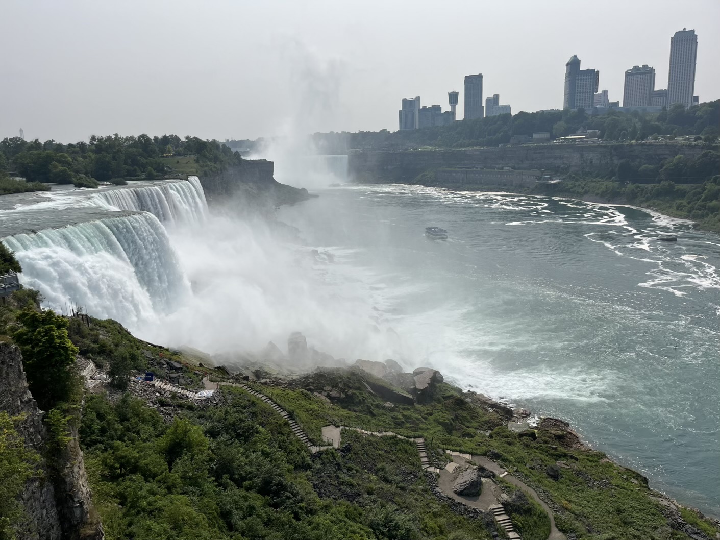 Ungeheure Wassermassen die hier runterstürzen, im Hintergrund die kanadische Seite der Fälle. (Das andere Ufer ist bereits Kanada)