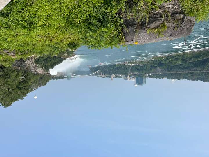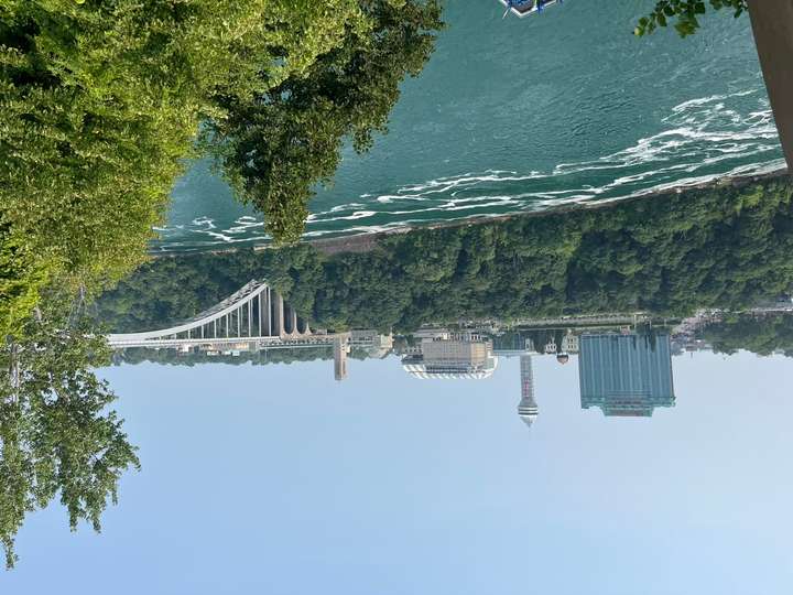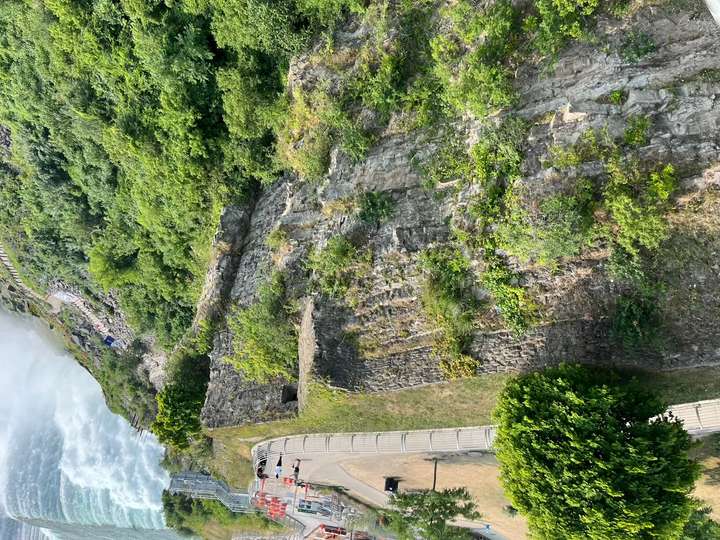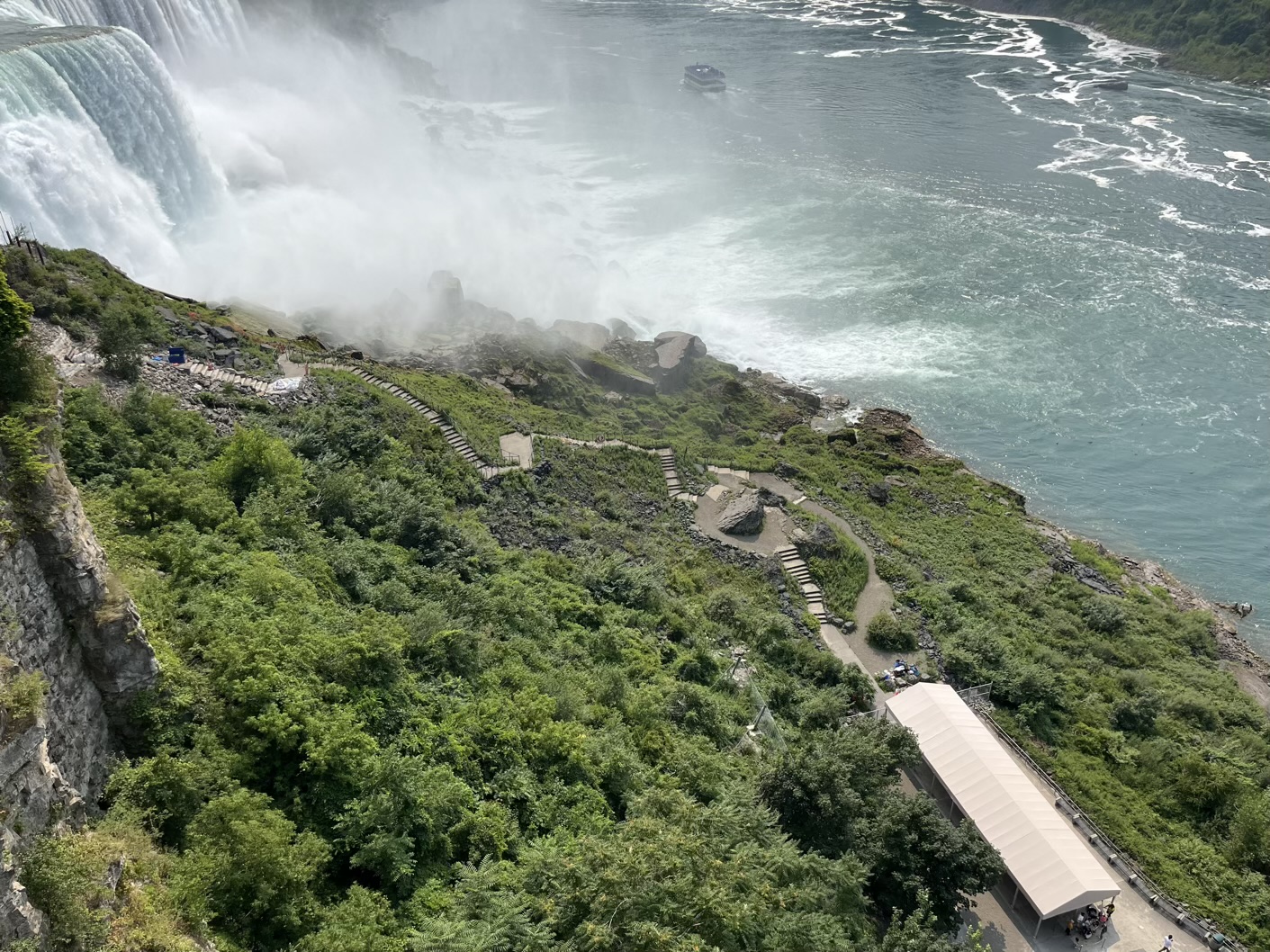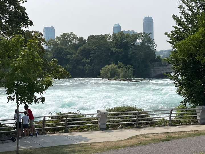 Was blieb uns anderes übrig als das Angebot zu nehmen, dafür aber nur für eine Nacht. Da es erst am frühen Nachmittag war haben wir Mittag gegessen und sind danach zum Niagara Falls State Park gefahren. Es hätte auch ÖV gegeben, alledings wäre das mit einem Fussmarsch von 23 Minuten gemäss Google verbunden gewesen. So sind wir halt mit dem Wohnmobil gefahren und konnten dort für 10$ parkieren und für weitere 10$ das Parkbähnli benutzen dass alle Aussichtpunkte Hop-on Hop-off anfährt. Das war sehr bequem.