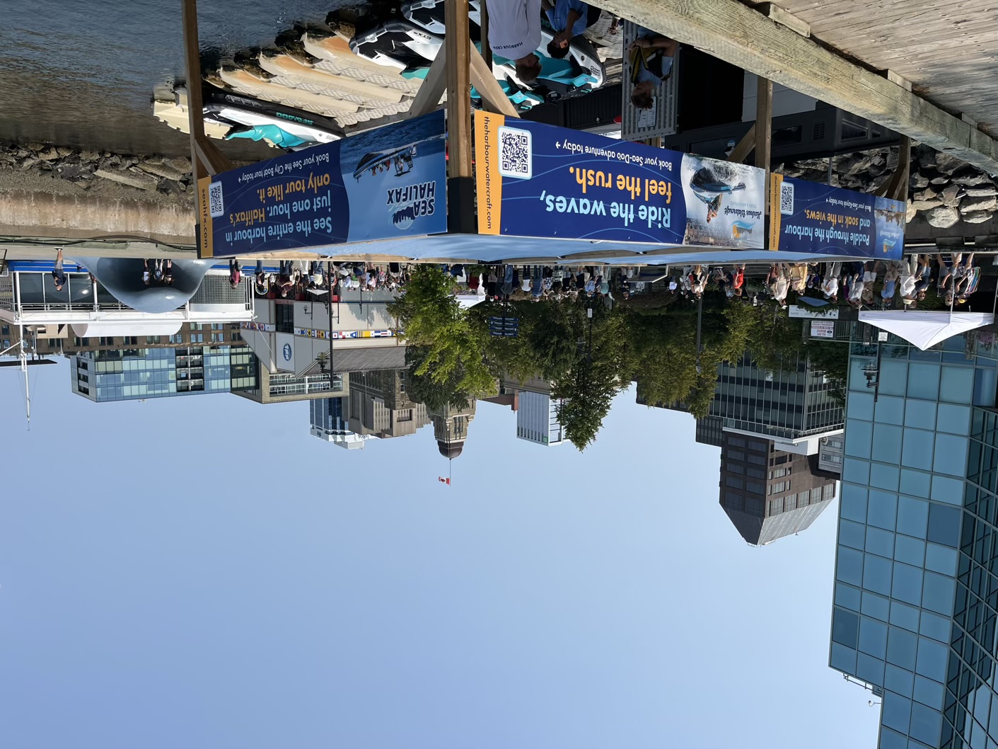 Zuerst waren wir gestern noch mit dem Mietwagen an der "Waterfront" in Halifax. Dort haben wir gut gegessen und das bunte Treiben am Hafen beobachtet.