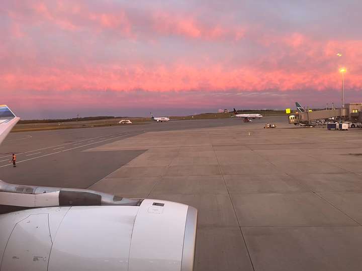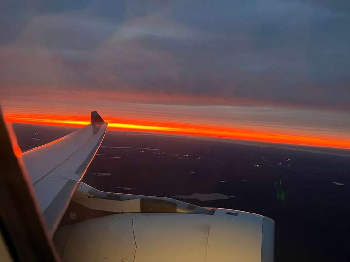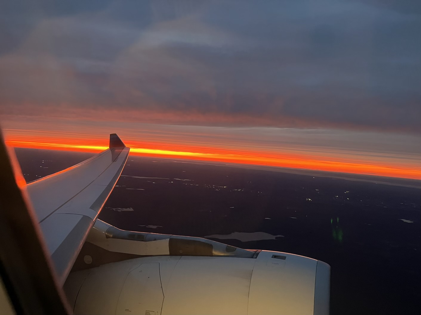 Schliesslich wurden wir beim Abflug noch mit einem wunderschönen Abendrot verabschiedet. Bye Bye Nordamerika!😅