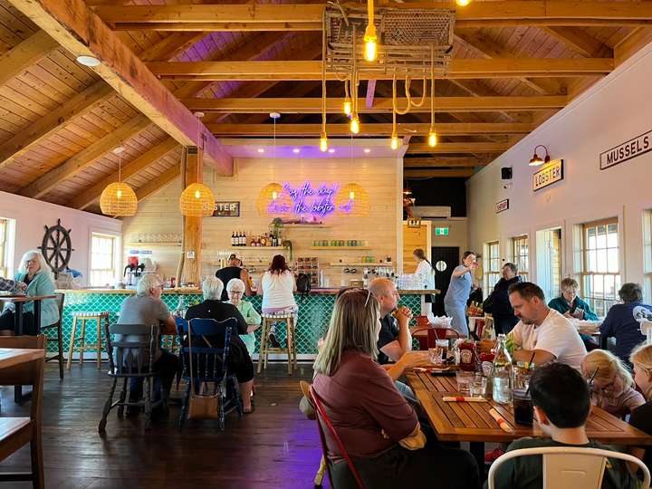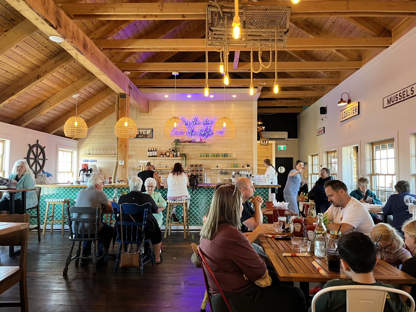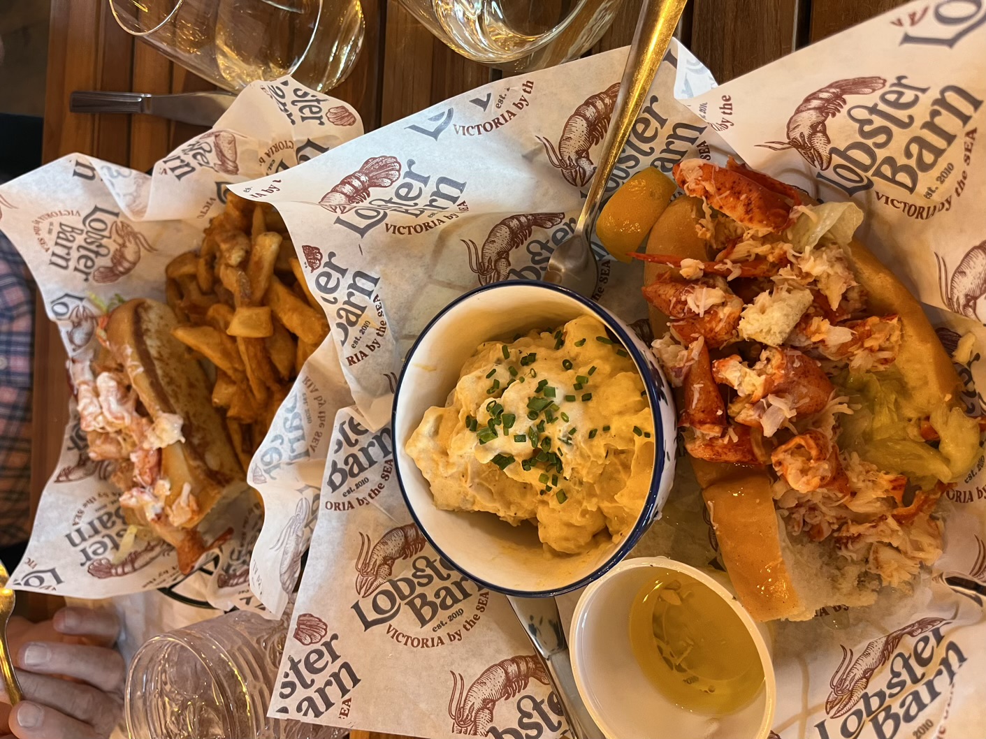 Wir bevorzugen das nahegelegene Restaurant in Victoria by the Sea am Fischerhafen um uns Lobster Rolls zum Mittagessen zu genehmigen. Viele Menschen haben wir bisher nicht gesehen, aber an der Lobster Barn ist alles voll parkiert und die Menschen stehen vor dem Lokal Schlange. Wir mussten 20 Minuten auf einen freien Tisch warten. Die Lobster Rolls jedoch waren sehr fein, nur waren wir erstaunt dass das Lobster Fleisch kalt serviert wurde.