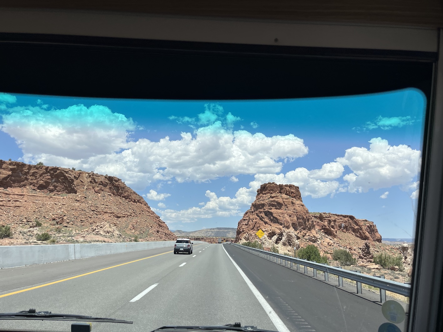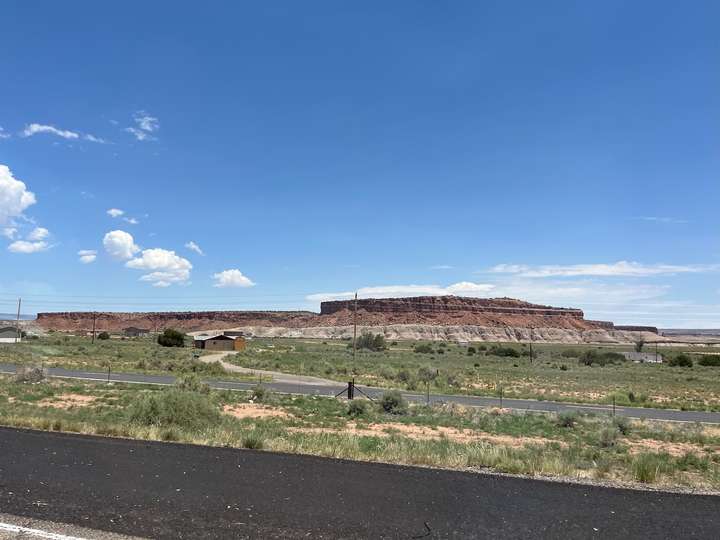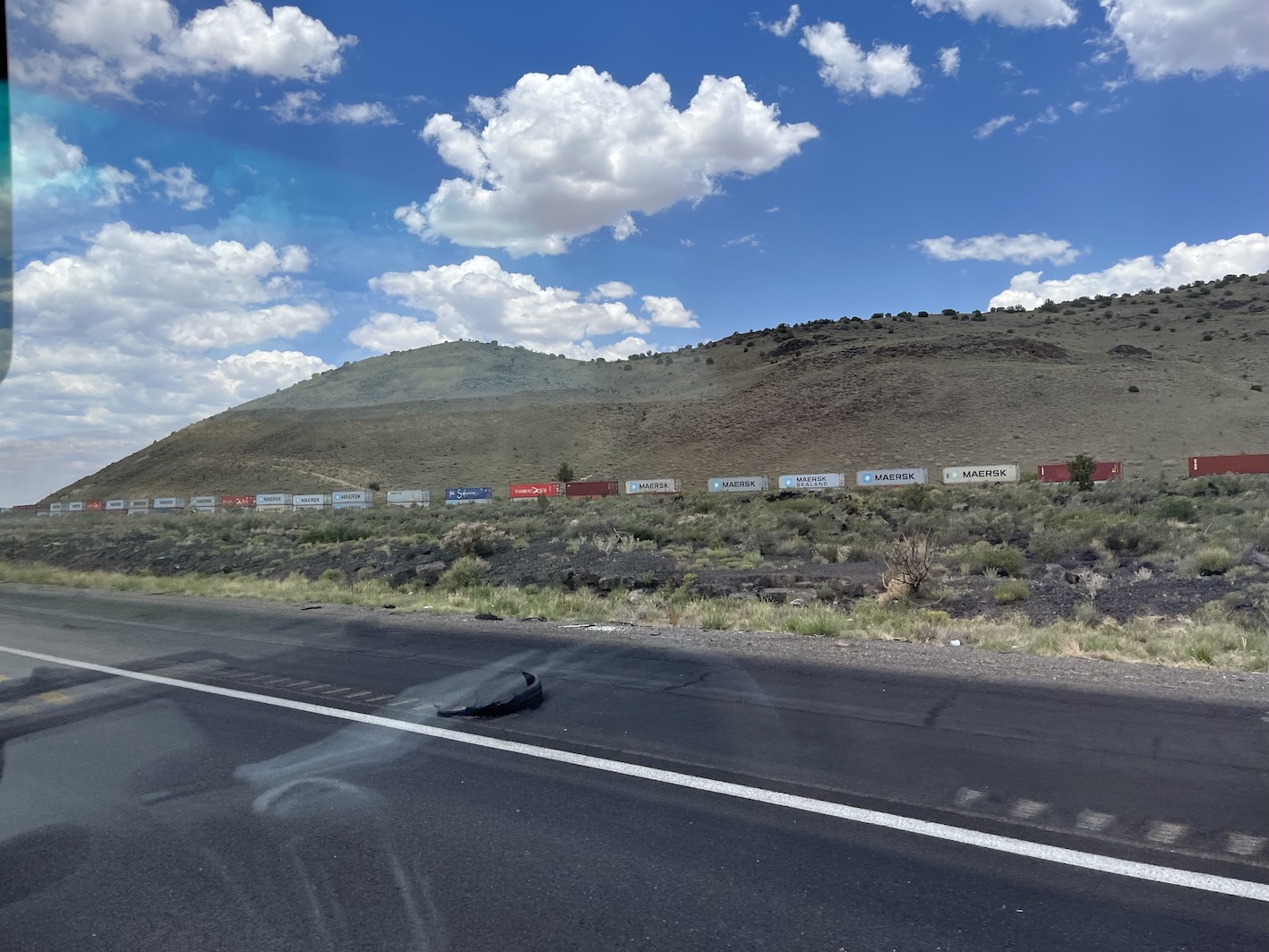 Interessante und abwechslungsreiche Strasse über die Highways Interstate-25 und Interstate-40. Viel Prairie mit Rinderzucht, eingesäumt von Sandstein Tafelbergen. In Grants gibt es einen erloschenen Vulkan mit einer Eis Höhle und viel schwarzes Lava-Gestein.