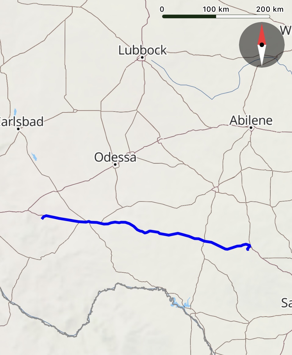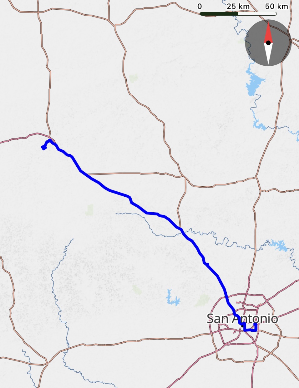 Gestern und heute sind wir von San Antonio westwärts gefahren. Insgesamt waren das 635km durch die etwas eintönige Prairie. Zur Abwechslung haben wir Tafelberge und ab und zu einige Erdöl-Pumpen und Windräder gesehen.