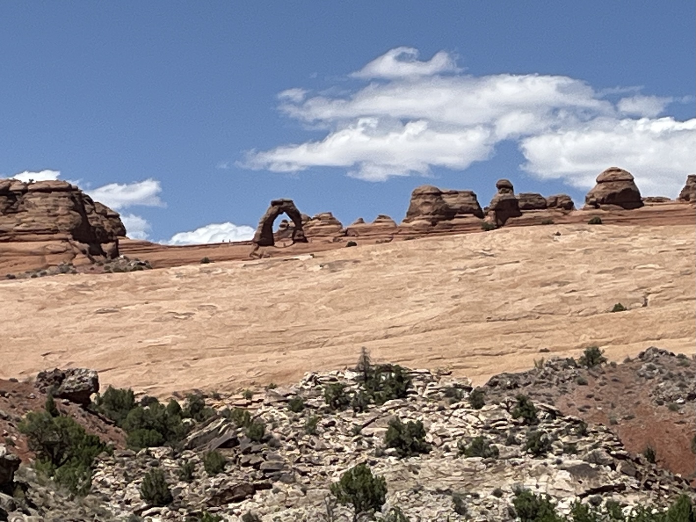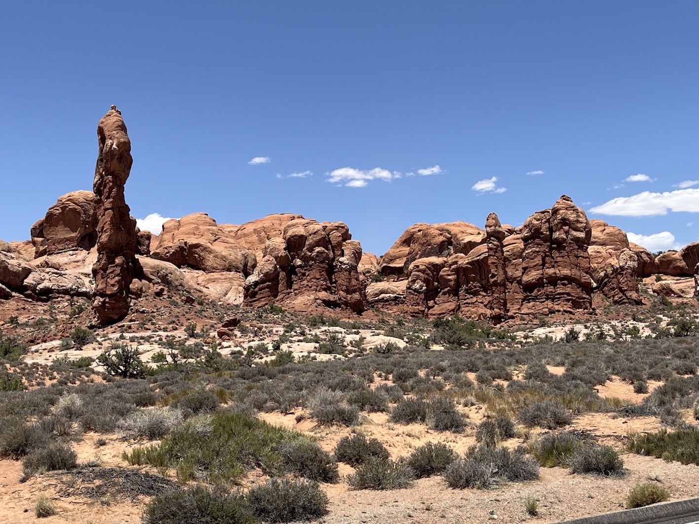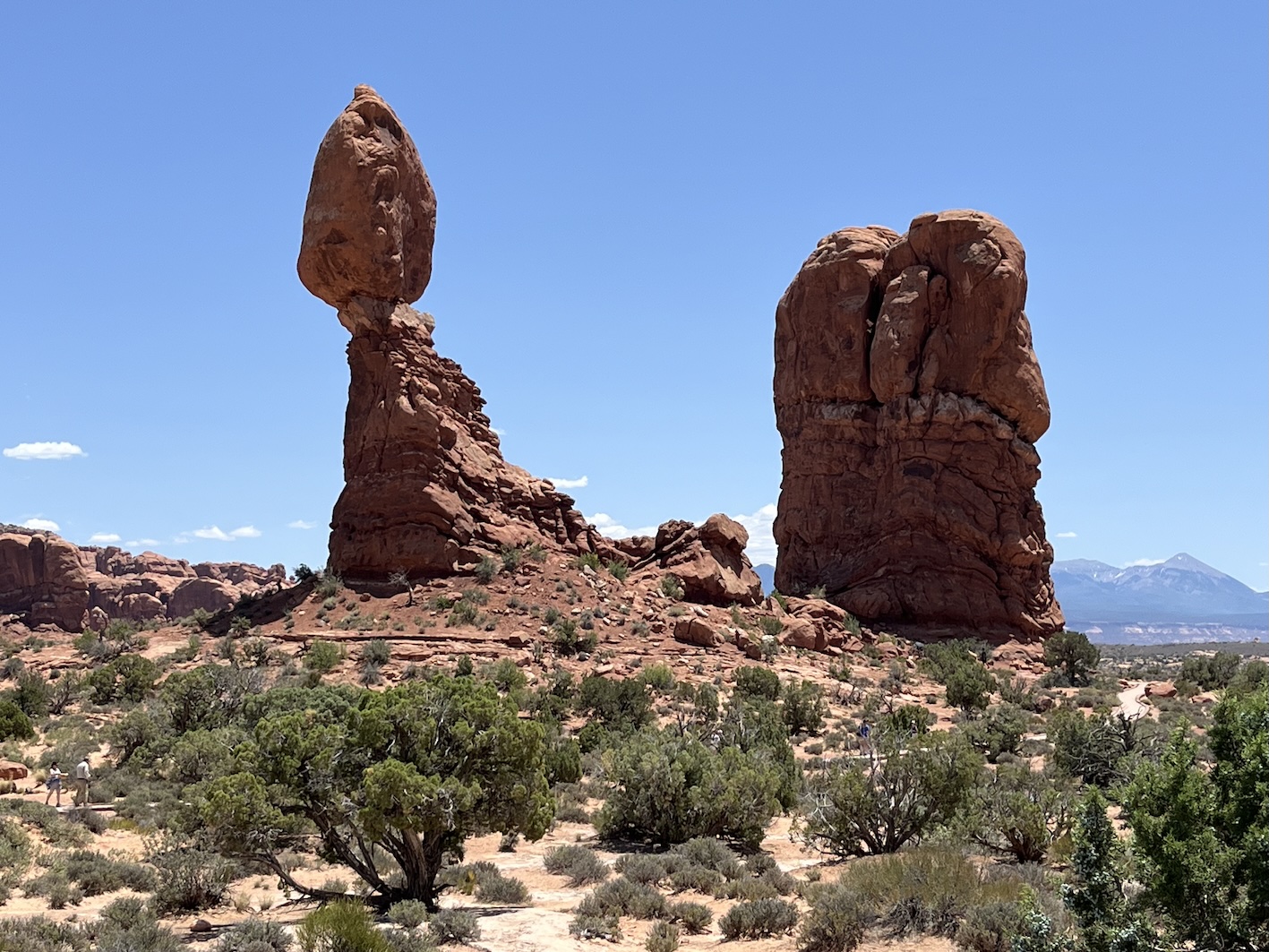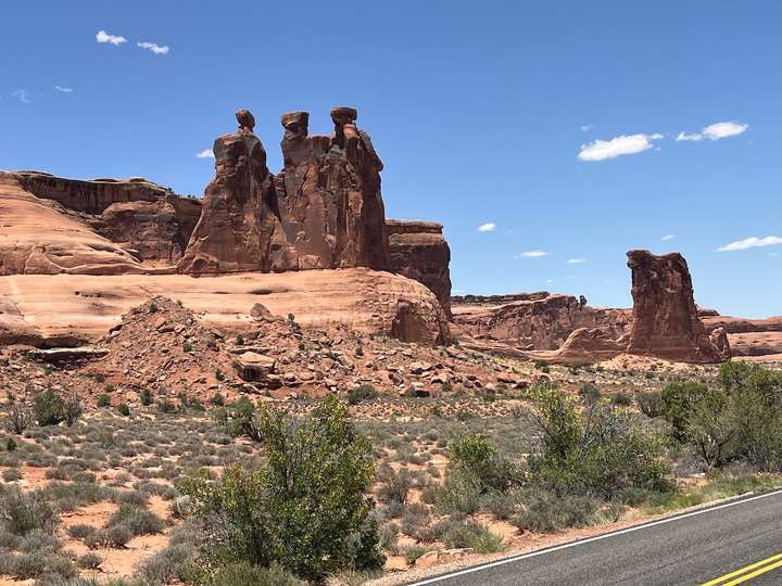 Einige dieser berühmten Steinbogen kann man von nahem nur nach teils kilometerlangen Wegen zu Fuss erreichen. Insbesondere der Delicate Arch, der das Wahrzeichen des Staats Utah ist, kann nur zu Fuss über einen 4.3km langen Weg erreicht werden. Das war für uns zu weit und zu steil zumal es locker 40° heiss war. Oft bin ich nur kurz ausgestiegen um ein Foto zu machen, oder wir sind kurze Wege zu einem der vielen Aussichtspunkte gegangen.