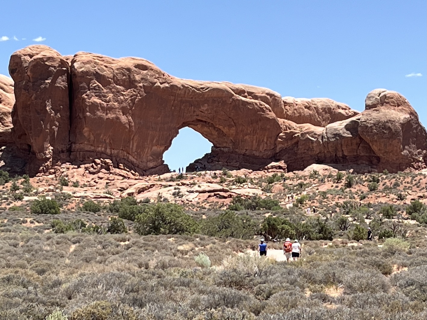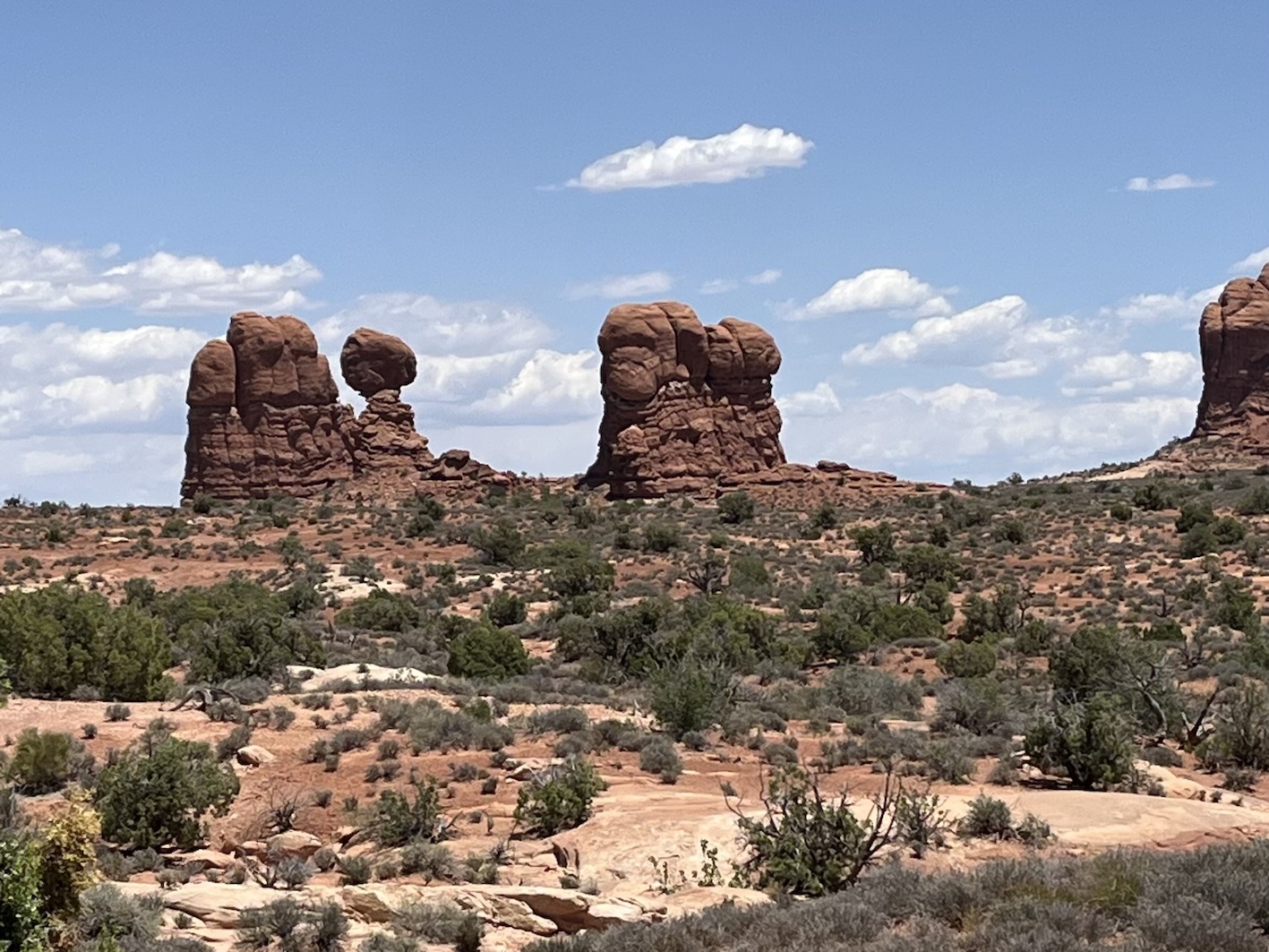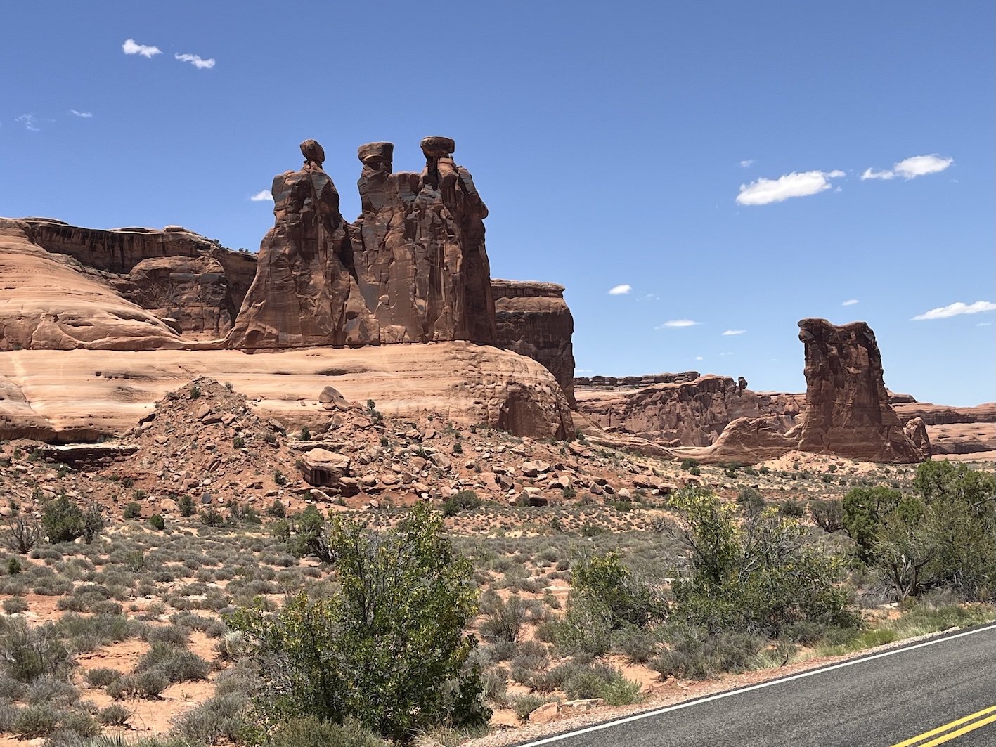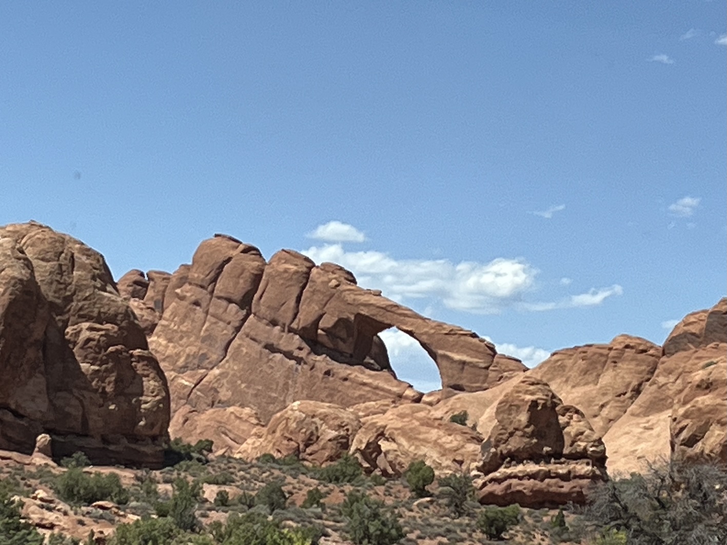 Einige dieser berühmten Steinbogen kann man von nahem nur nach teils kilometerlangen Wegen zu Fuss erreichen. Insbesondere der Delicate Arch, der das Wahrzeichen des Staats Utah ist, kann nur zu Fuss über einen 4.3km langen Weg erreicht werden. Das war für uns zu weit und zu steil zumal es locker 40° heiss war. Oft bin ich nur kurz ausgestiegen um ein Foto zu machen, oder wir sind kurze Wege zu einem der vielen Aussichtspunkte gegangen.