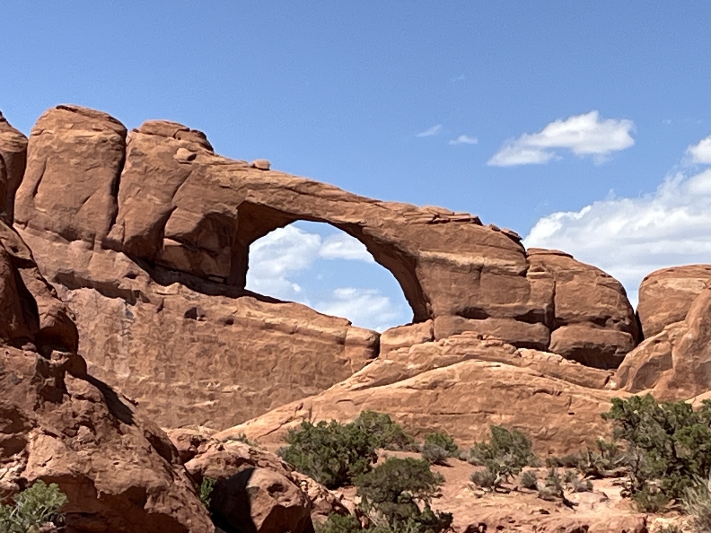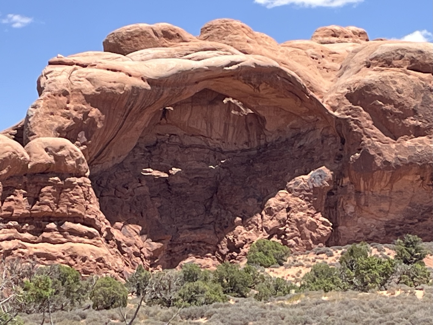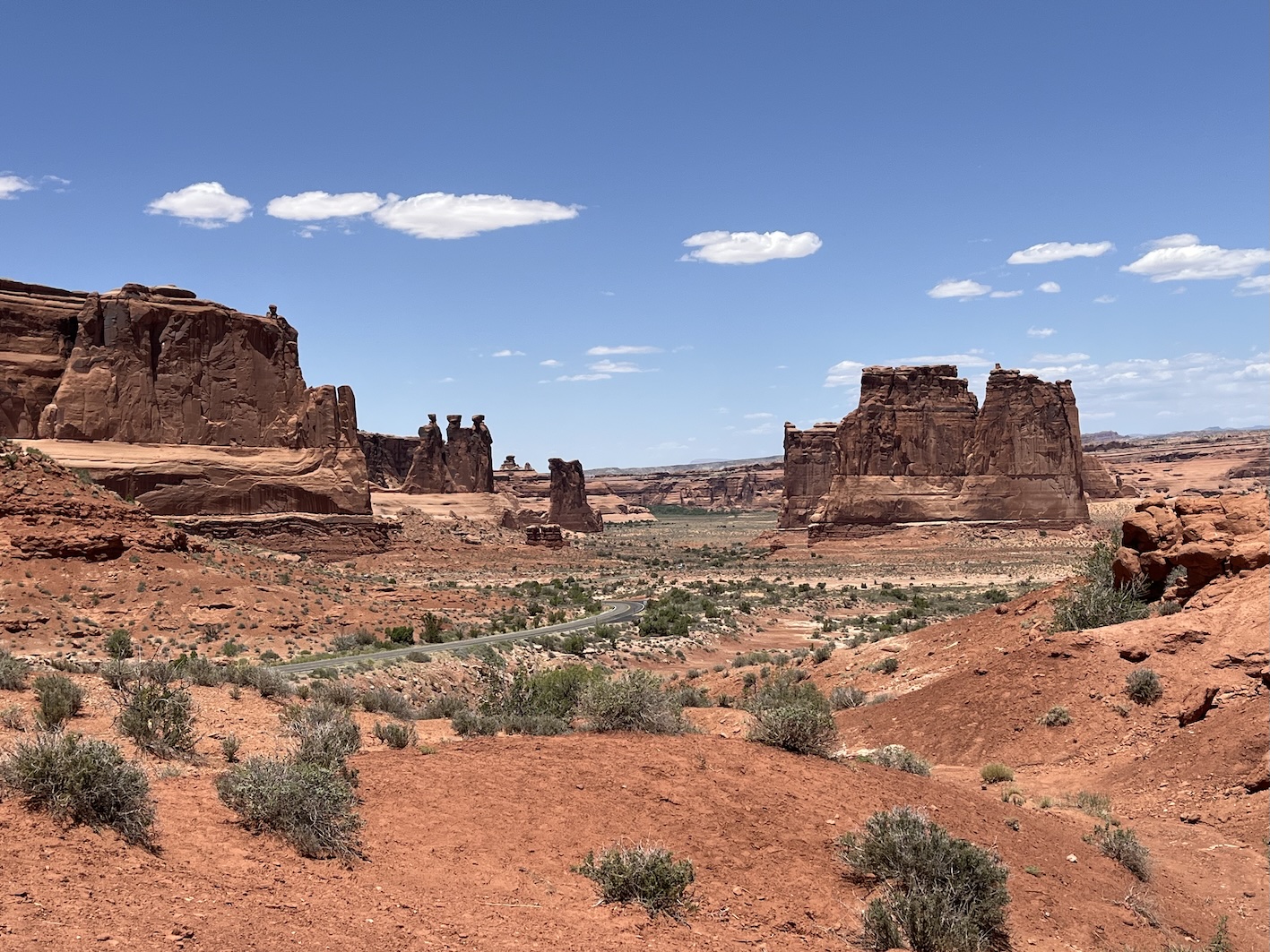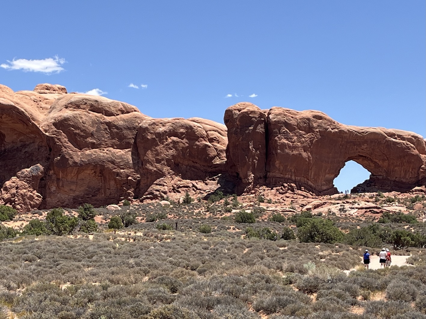 Einige dieser berühmten Steinbogen kann man von nahem nur nach teils kilometerlangen Wegen zu Fuss erreichen. Insbesondere der Delicate Arch, der das Wahrzeichen des Staats Utah ist, kann nur zu Fuss über einen 4.3km langen Weg erreicht werden. Das war für uns zu weit und zu steil zumal es locker 40° heiss war. Oft bin ich nur kurz ausgestiegen um ein Foto zu machen, oder wir sind kurze Wege zu einem der vielen Aussichtspunkte gegangen.