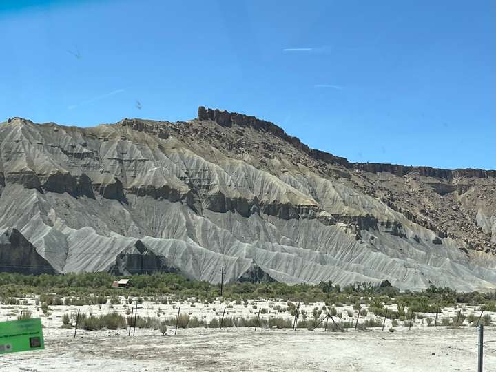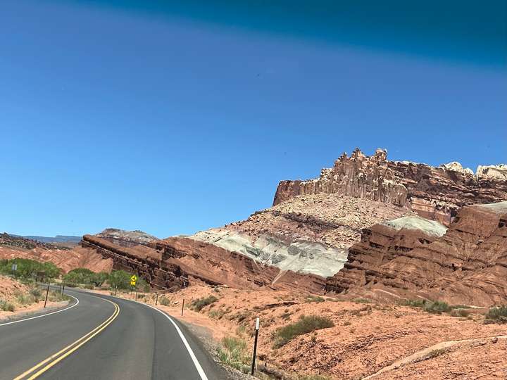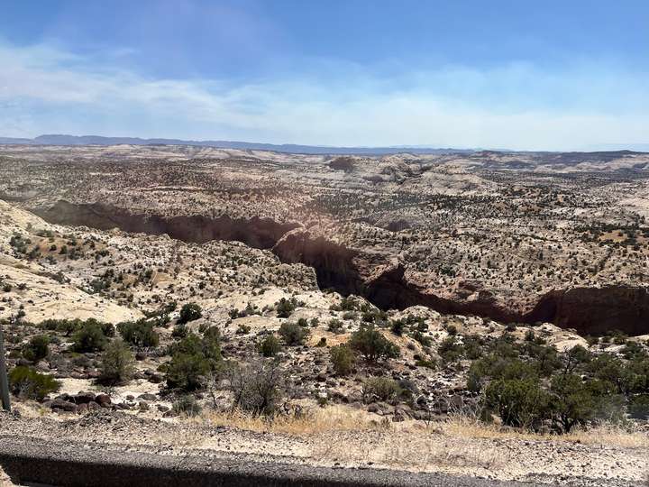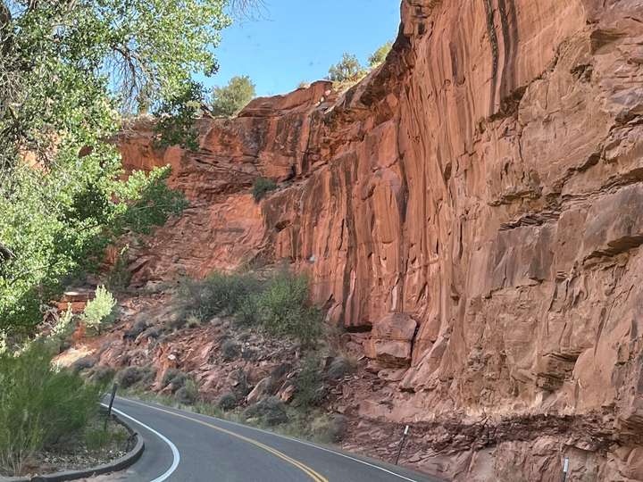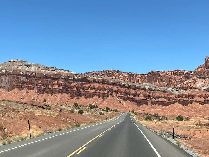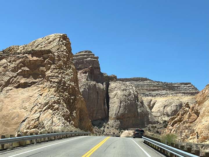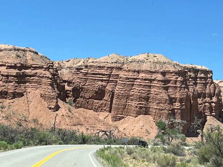 Die Fahrt sollte in die Nähe des Bryce Canyon gehen. Eigentlich war geplant von Green River nur bis Torrey zu fahren, eine relativ kurze Etappe. Aber der erste Camping war besetzt und die nächten zwei RV-Parks im Ort waren unzumutbar. Um nicht wieder stundenlang eintönige Autobahn zu fahren, beschlossen wir dir Route 12 zu nehmen. Das hat sich als Glücksfall erwiesen, da diese Strasse wie wir nachträglich gemerkt haben, als "National Scenic Byway 12" bezeichnet wird.