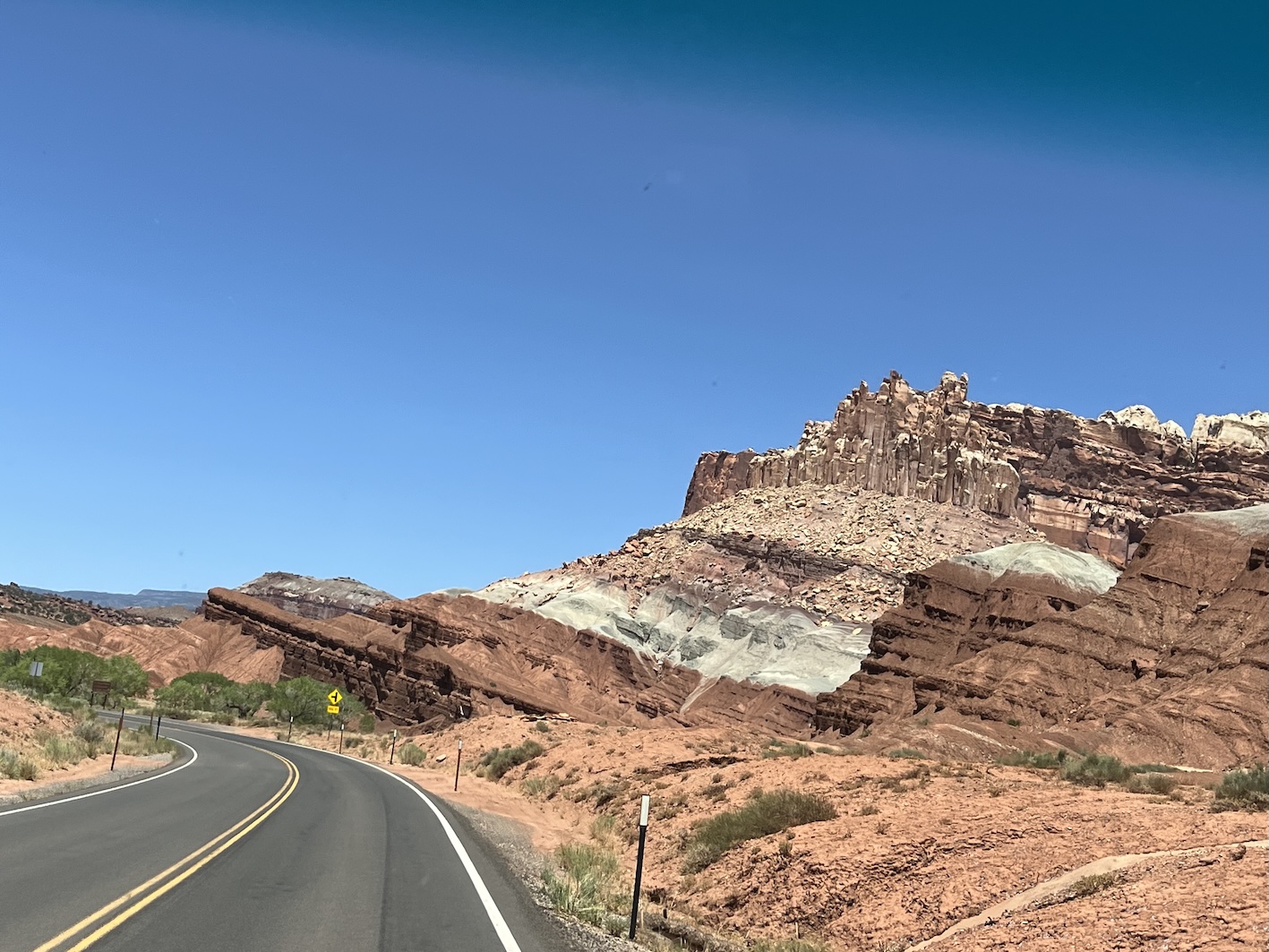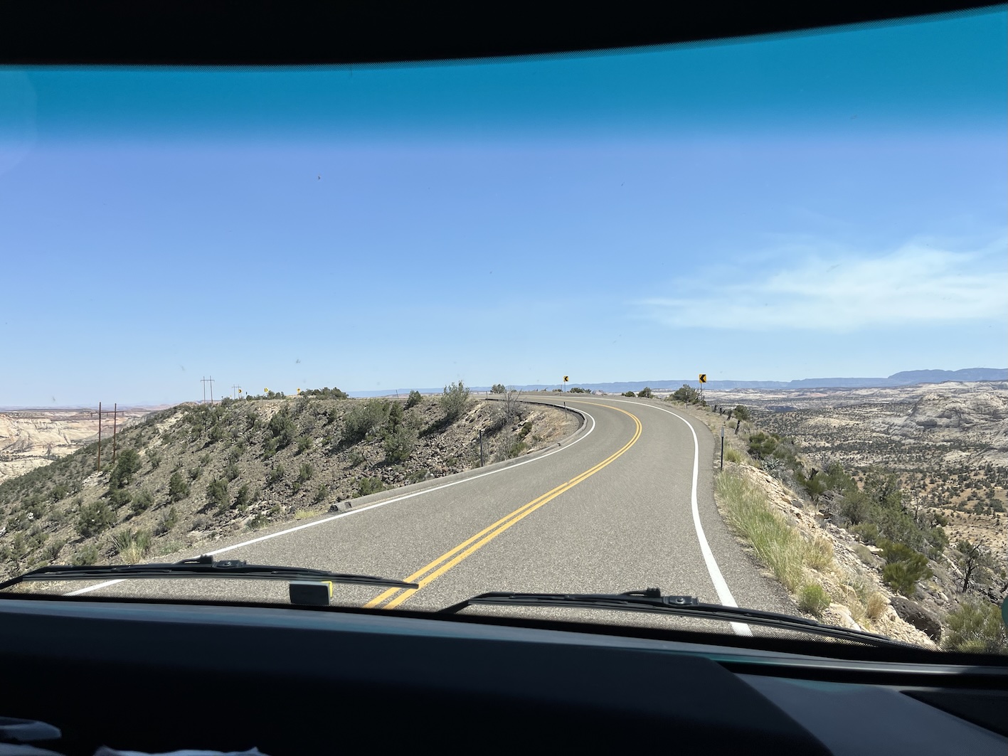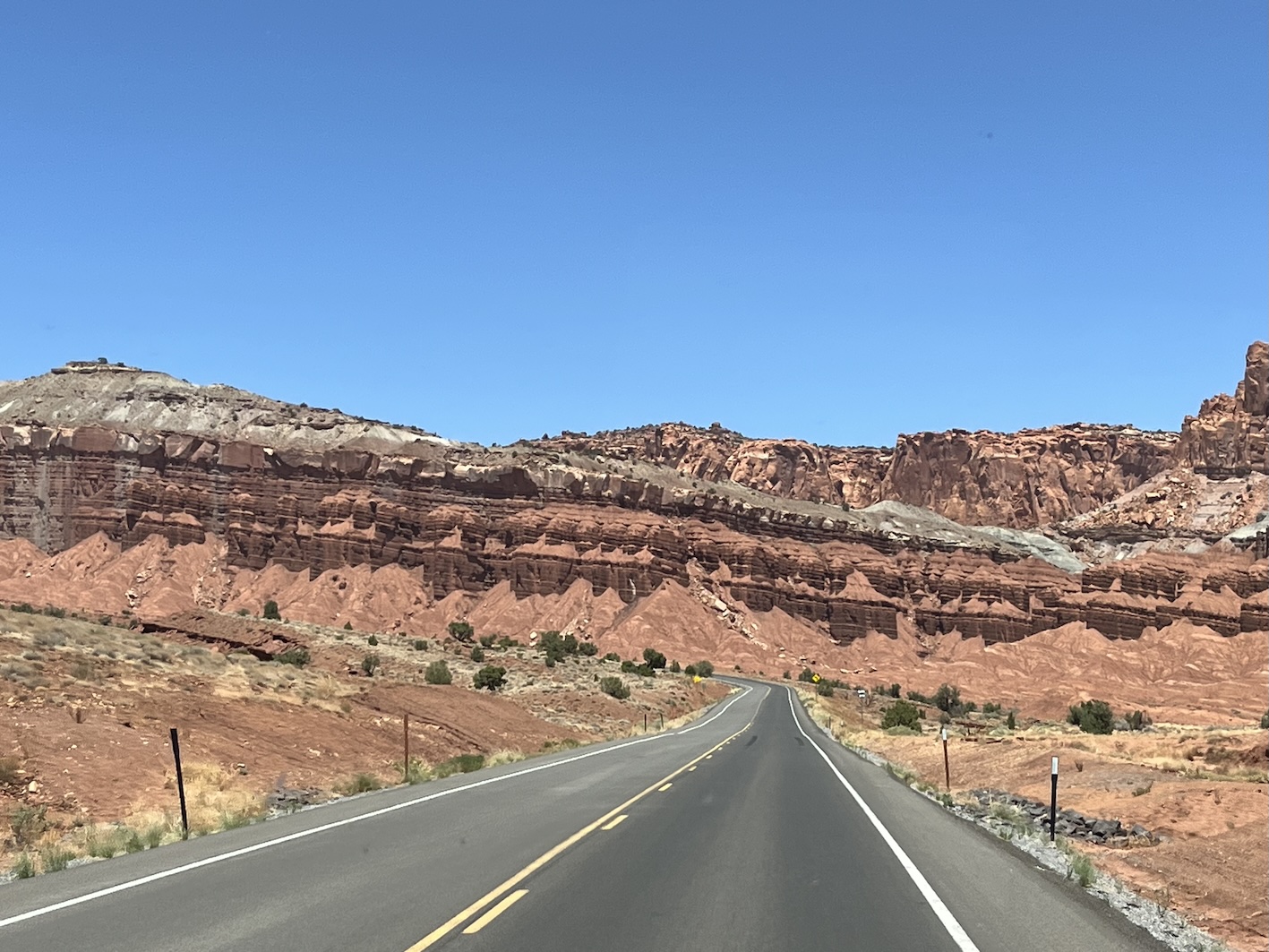 Die Fahrt sollte in die Nähe des Bryce Canyon gehen. Eigentlich war geplant von Green River nur bis Torrey zu fahren, eine relativ kurze Etappe. Aber der erste Camping war besetzt und die nächten zwei RV-Parks im Ort waren unzumutbar. Um nicht wieder stundenlang eintönige Autobahn zu fahren, beschlossen wir dir Route 12 zu nehmen. Das hat sich als Glücksfall erwiesen, da diese Strasse wie wir nachträglich gemerkt haben, als "National Scenic Byway 12" bezeichnet wird.