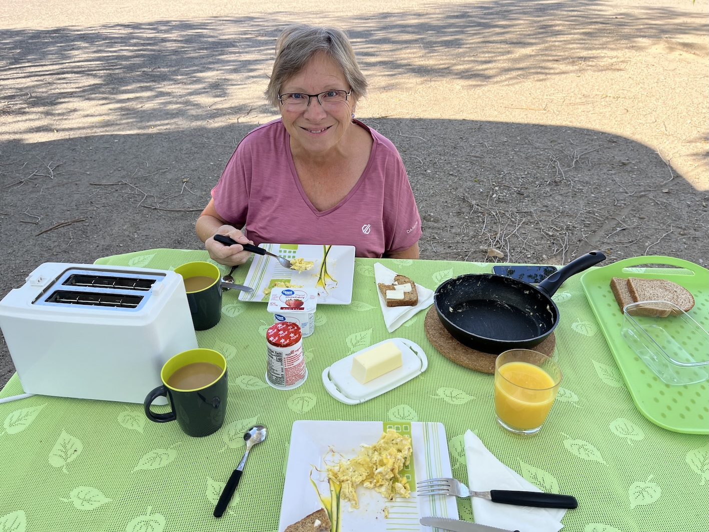 Am Campingplatz gab es eine Truck Self-Wash Station. Diese ist ähnlich ausgerüstet wie die Anlagen in der Schweiz, mit Hochdruckreiniger und etwa 7 verschiedenen Stufen (Felgenreiniger, Insektenlöser, Schaum, Hochdruck, Spülung und demineralisierten Wasser) und das für ganze 10$. So bekam das Womo noch gestern Abend eine Totalreinigung verpasst. Wenn ich schon dabei war, habe ich gleich noch Motoröl und Reifen kontrolliert. Tutti Paletti!