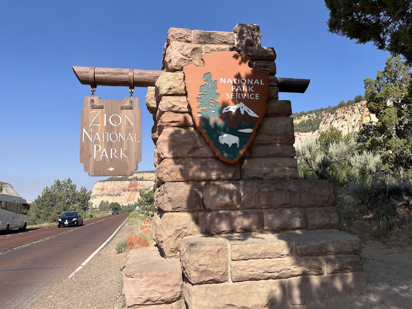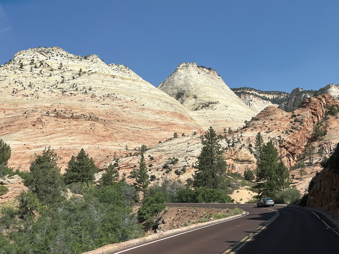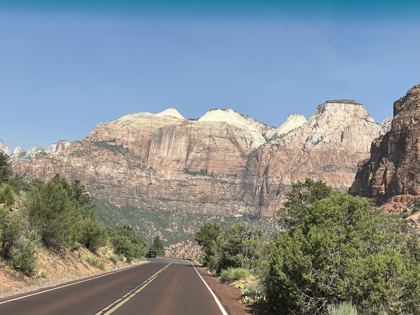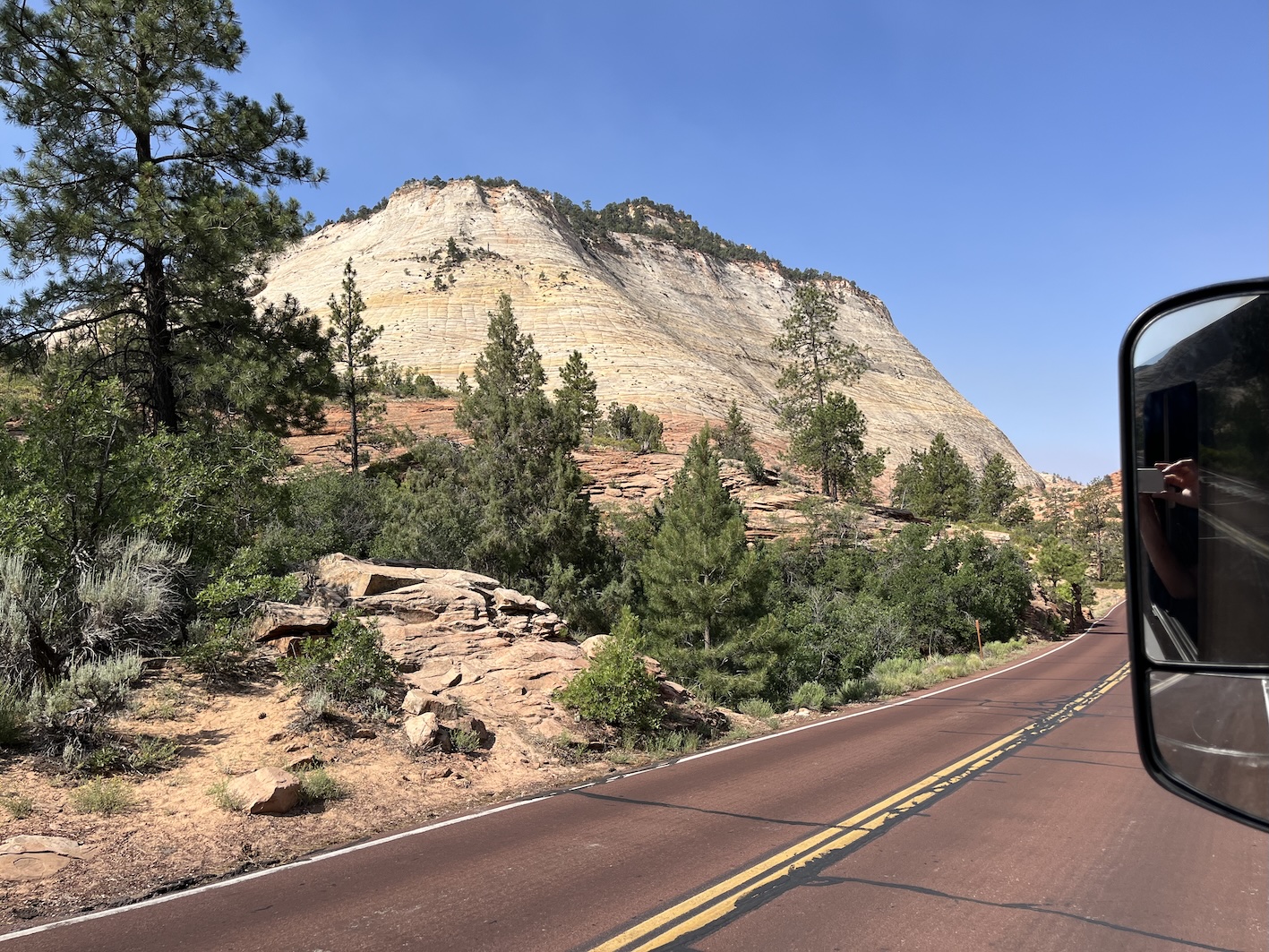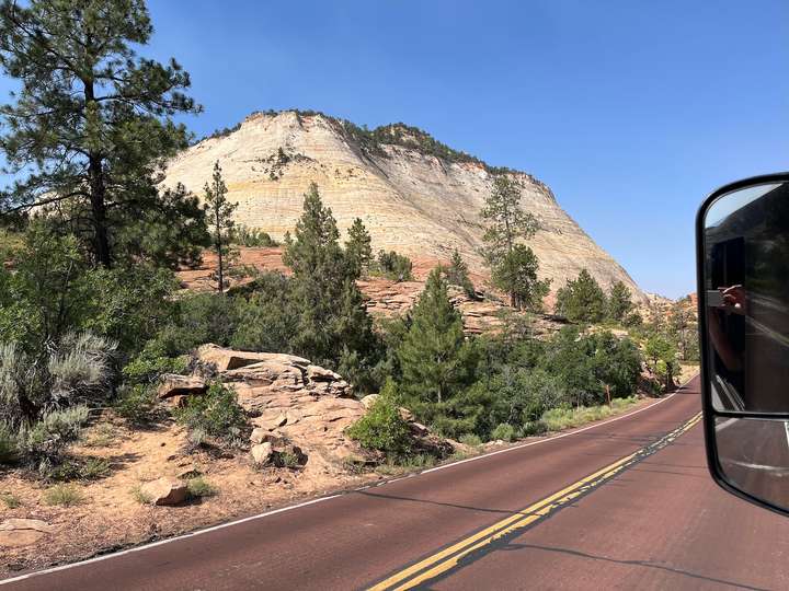 Heute gabs eine Etappe Drive-Through Museum, nämlich die Fahrt durch den Zion National Park. Dieser Park ist nun der letzte im Staat Utah. Einmal mehr ein phänomenaler Zeuge der Erdgeschichte.