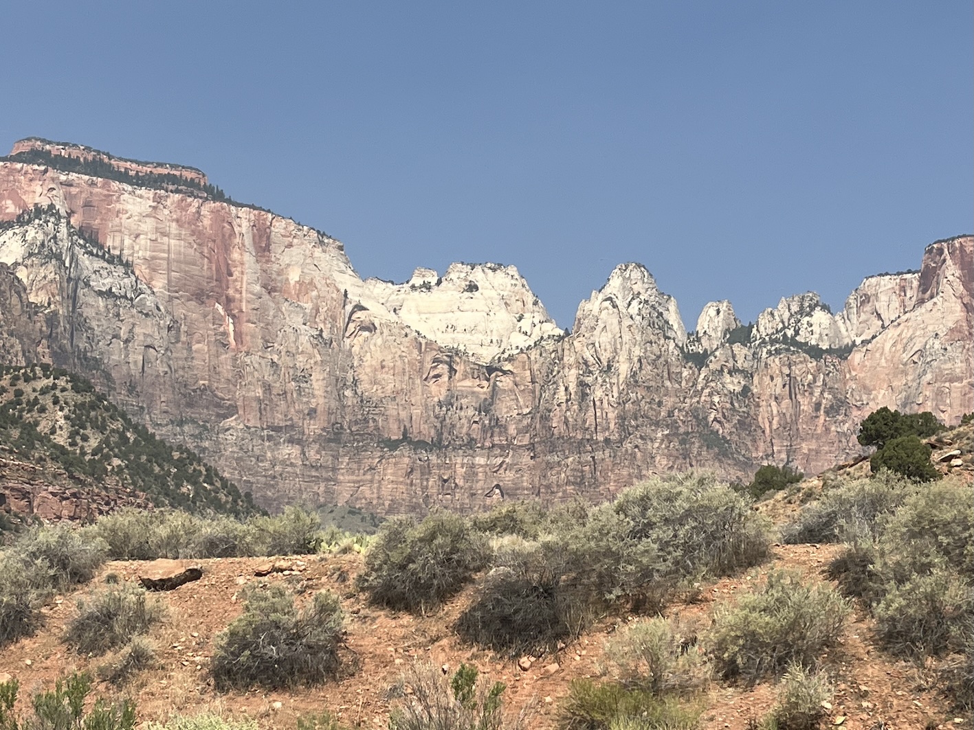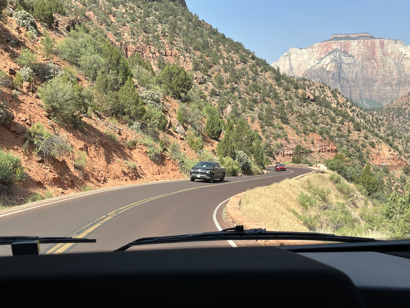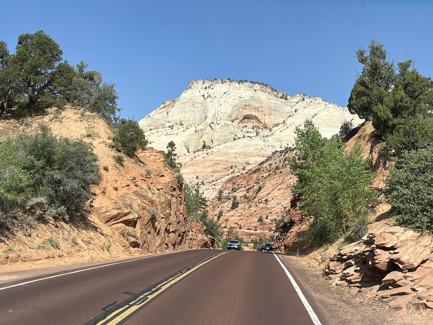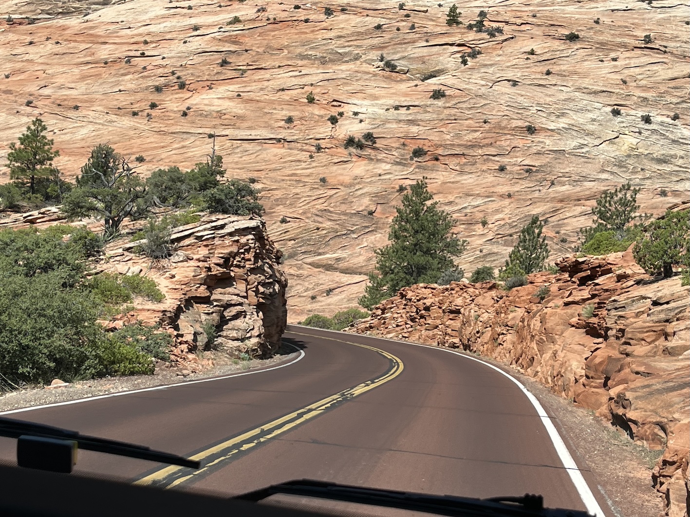Heute gabs eine Etappe Drive-Through Museum, nämlich die Fahrt durch den Zion National Park. Dieser Park ist nun der letzte im Staat Utah. Einmal mehr ein phänomenaler Zeuge der Erdgeschichte.