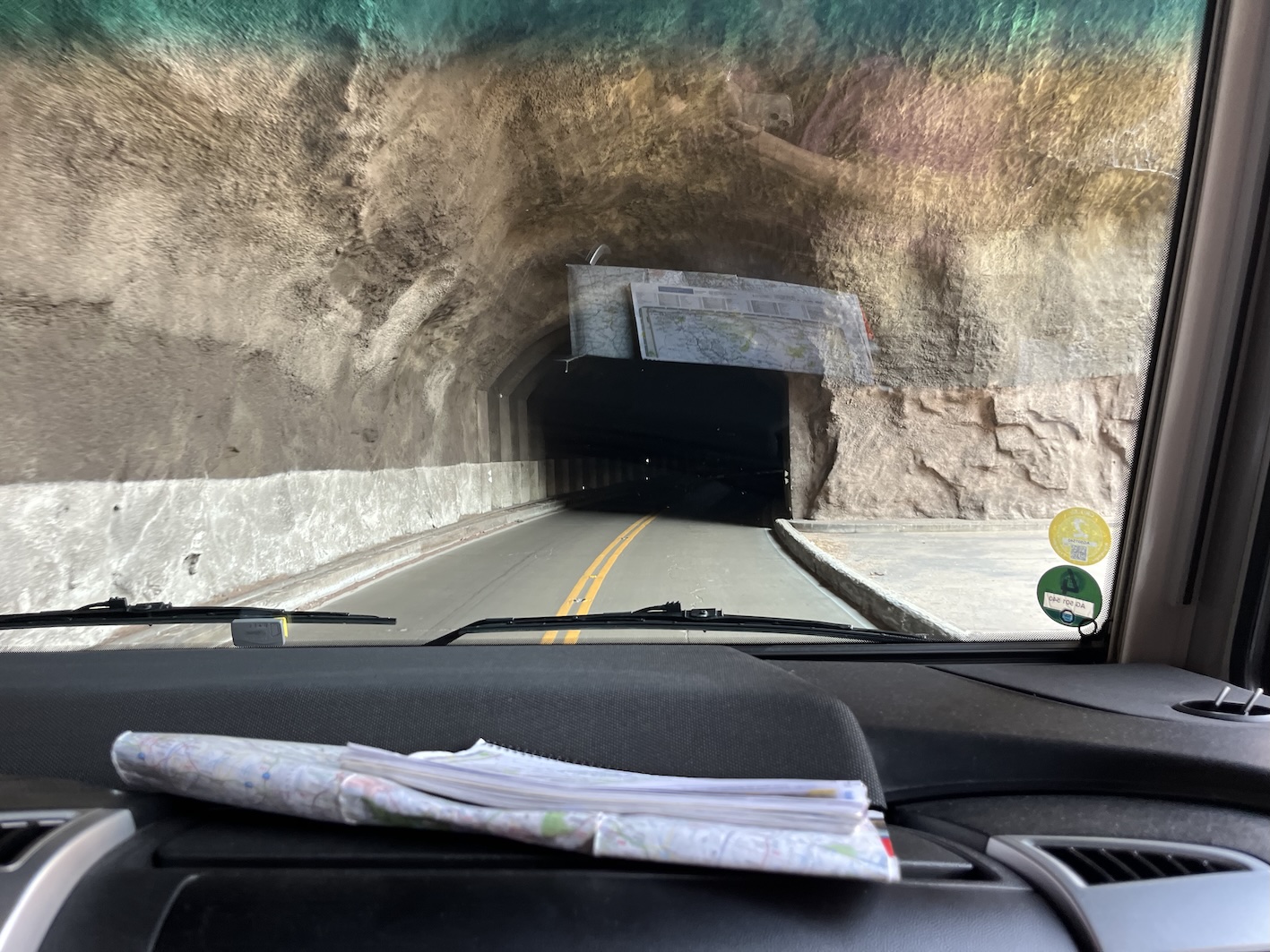 Beim Eintritt in den Park wurde unser Wohnmobil durch die Parkrangerin ausgemessen. Wir wären knapp noch in der akzeptablen Toleranz für den 1.5 Meilen langen Tunnel im Park gewesen. Jedoch hätten wir nur 2Inch Abstand in der Fahrspur gehabt. (5cm) Wäre wohl ziemlich anstrengend zu Fahren gewesen.